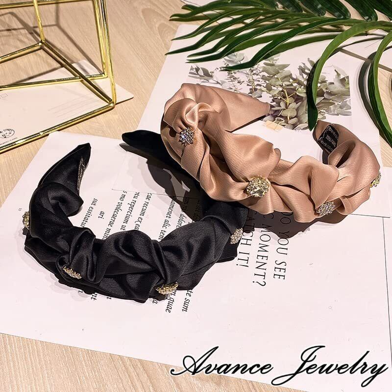 Avance カチューシャ ヘアーバンド ビジュー ストーン かわいい 大人 人気 ヘアアクセサリー ブラック ピンクベージュ レディース (ブラック)