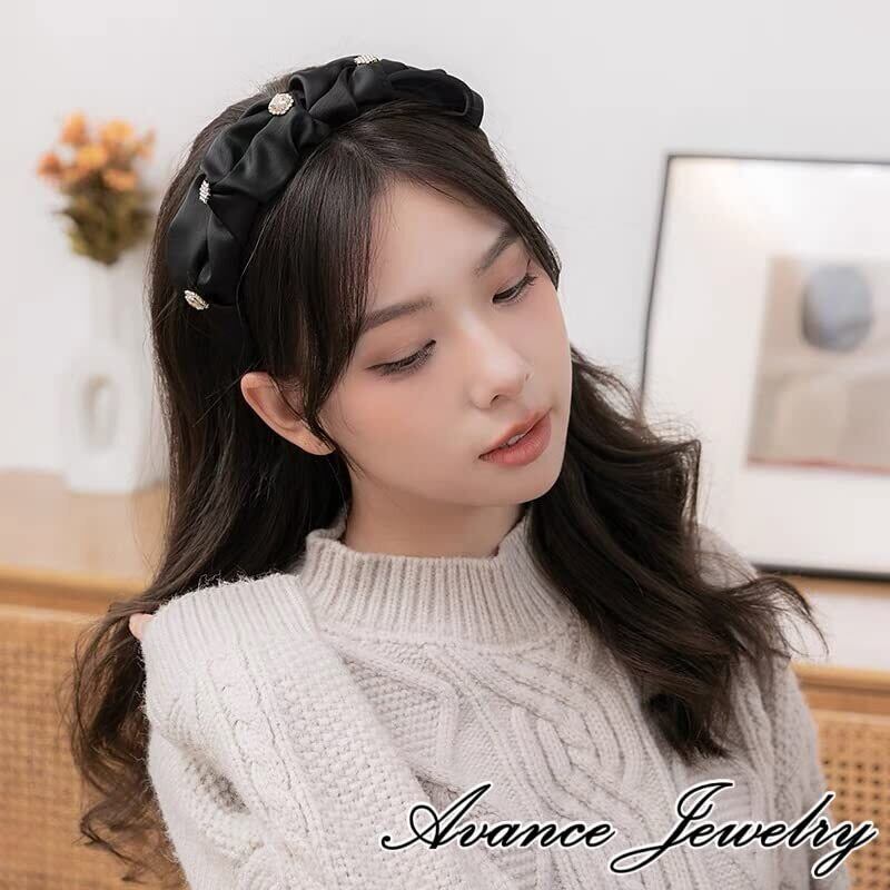 【新春セール】Avance カチューシャ ヘアーバンド ビジュー ストーン かわいい 大人 人気 ヘアアクセサリー ブラック ピンクベージュ レディース (ブラック)