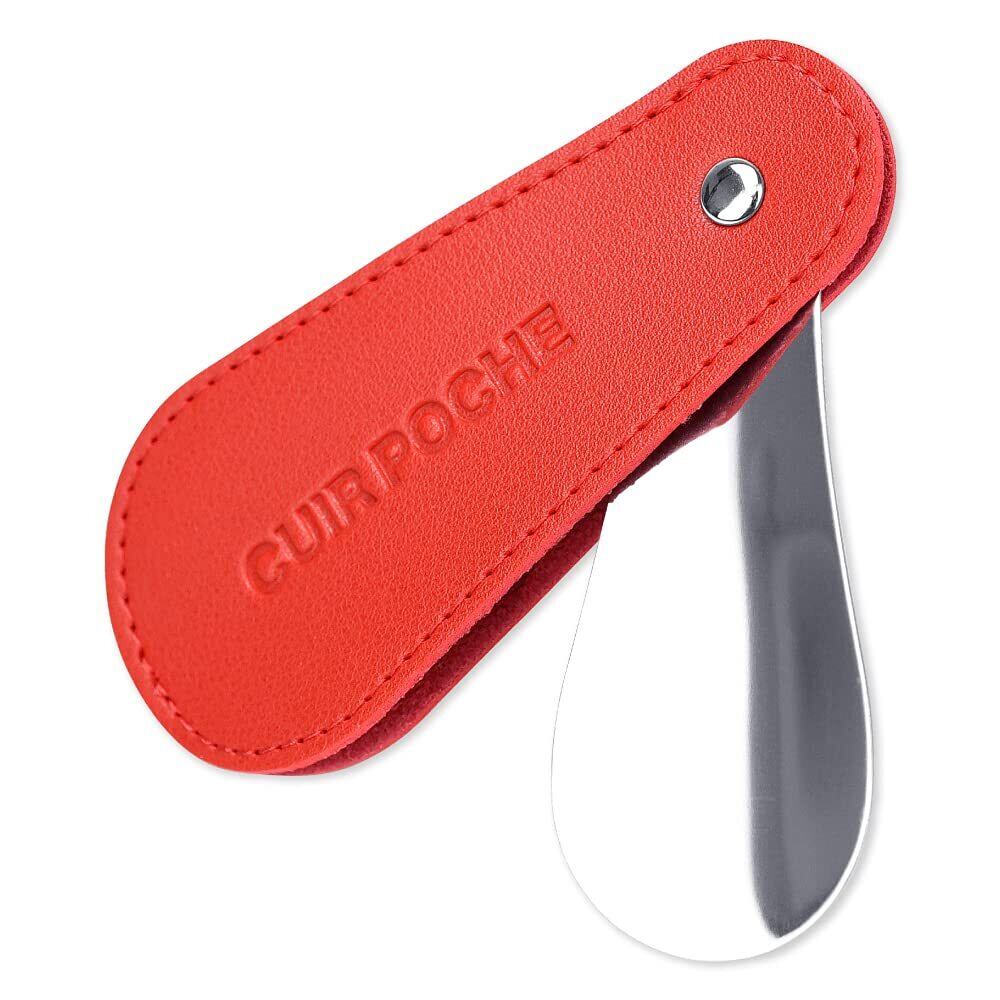 CUIR POCHE 靴べら シューホーン 携帯 おしゃれ レザー調 カバー付き ロック機能 傷つき防止 撥水加工 防汚加工 ステンレス 軽量 ビジネス ゴルフ メンズ レディース