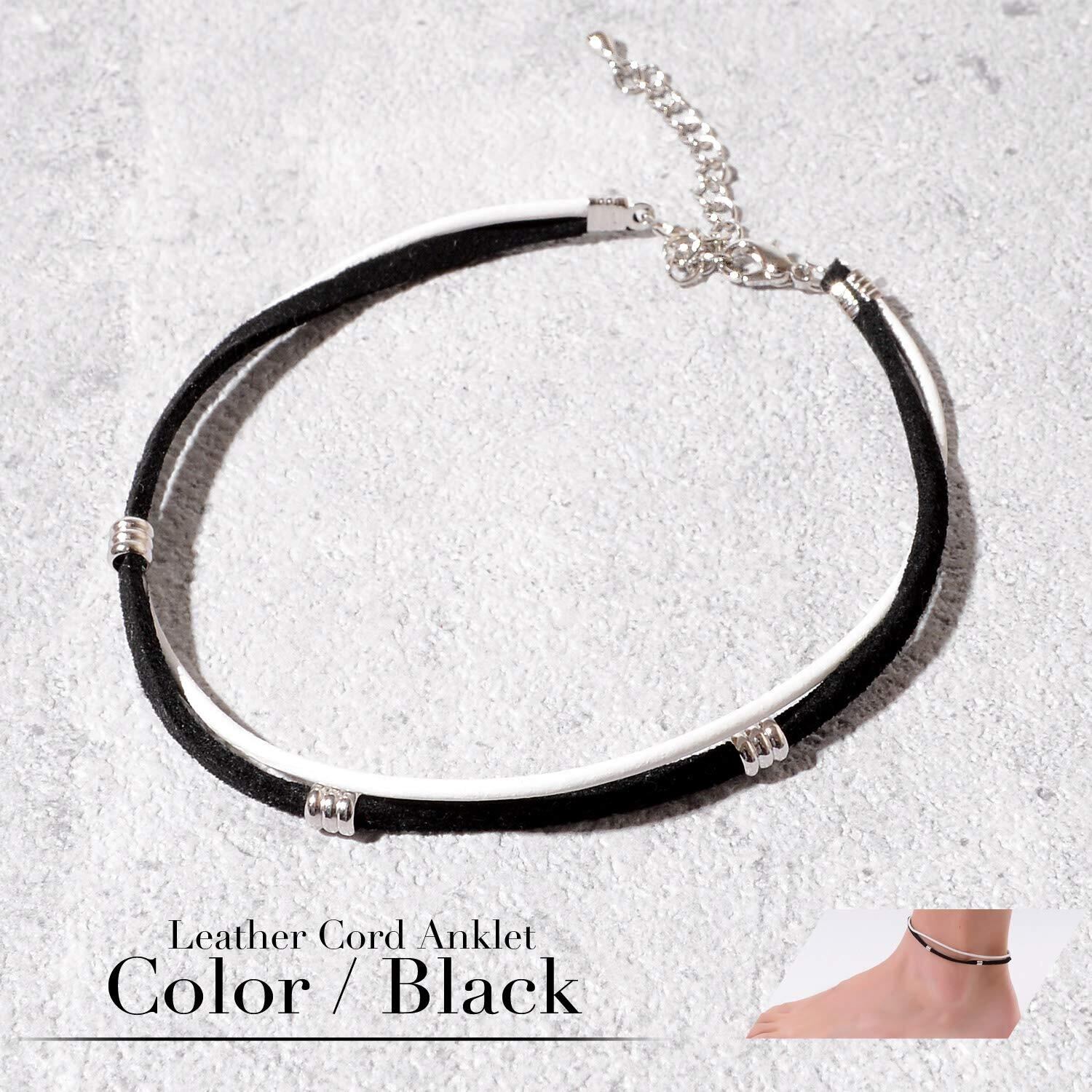 [ナル] 本革 レザー コード アンクレット メンズ レディース ペア おそろい カップル つけっぱなし シンプル 人気 ブランド 2連