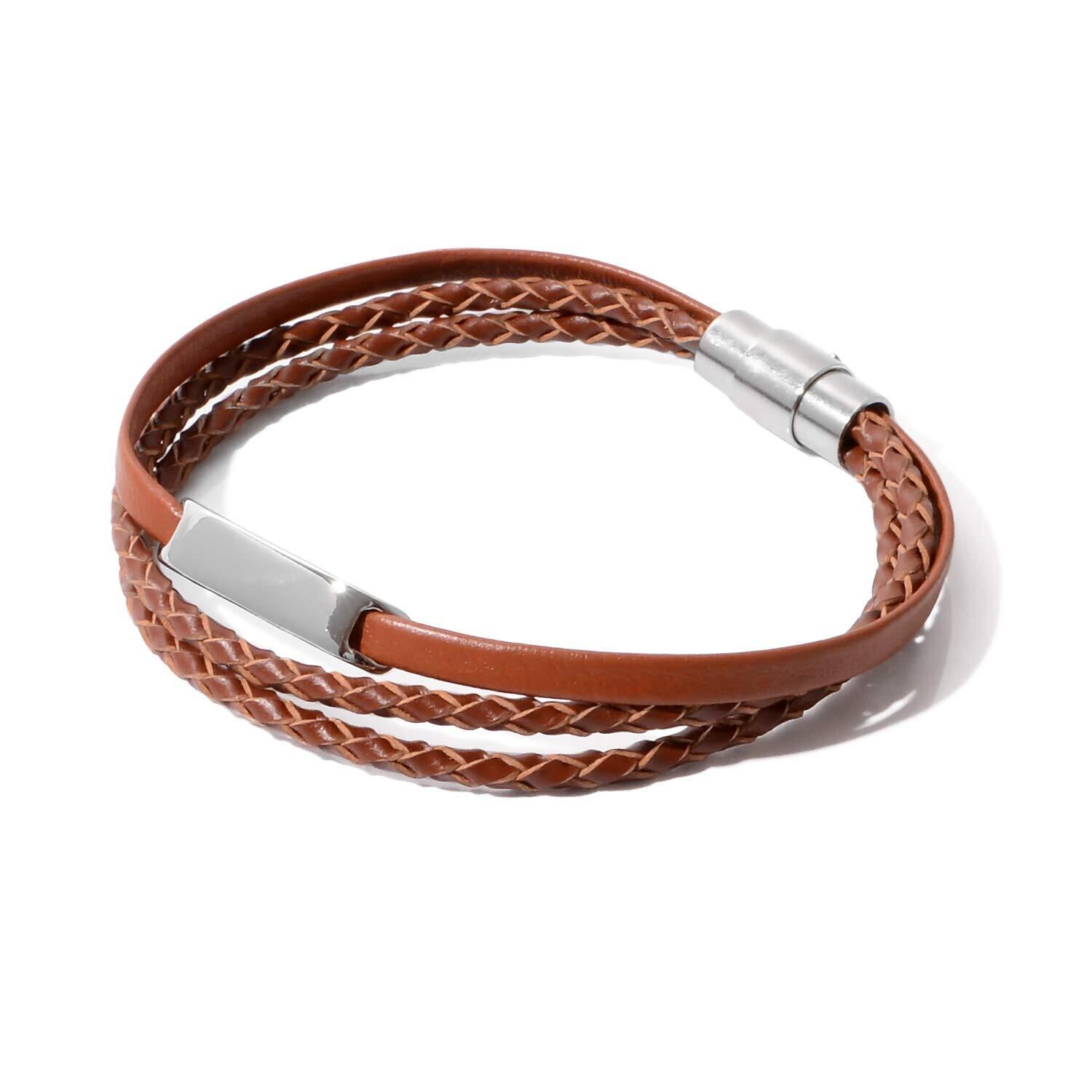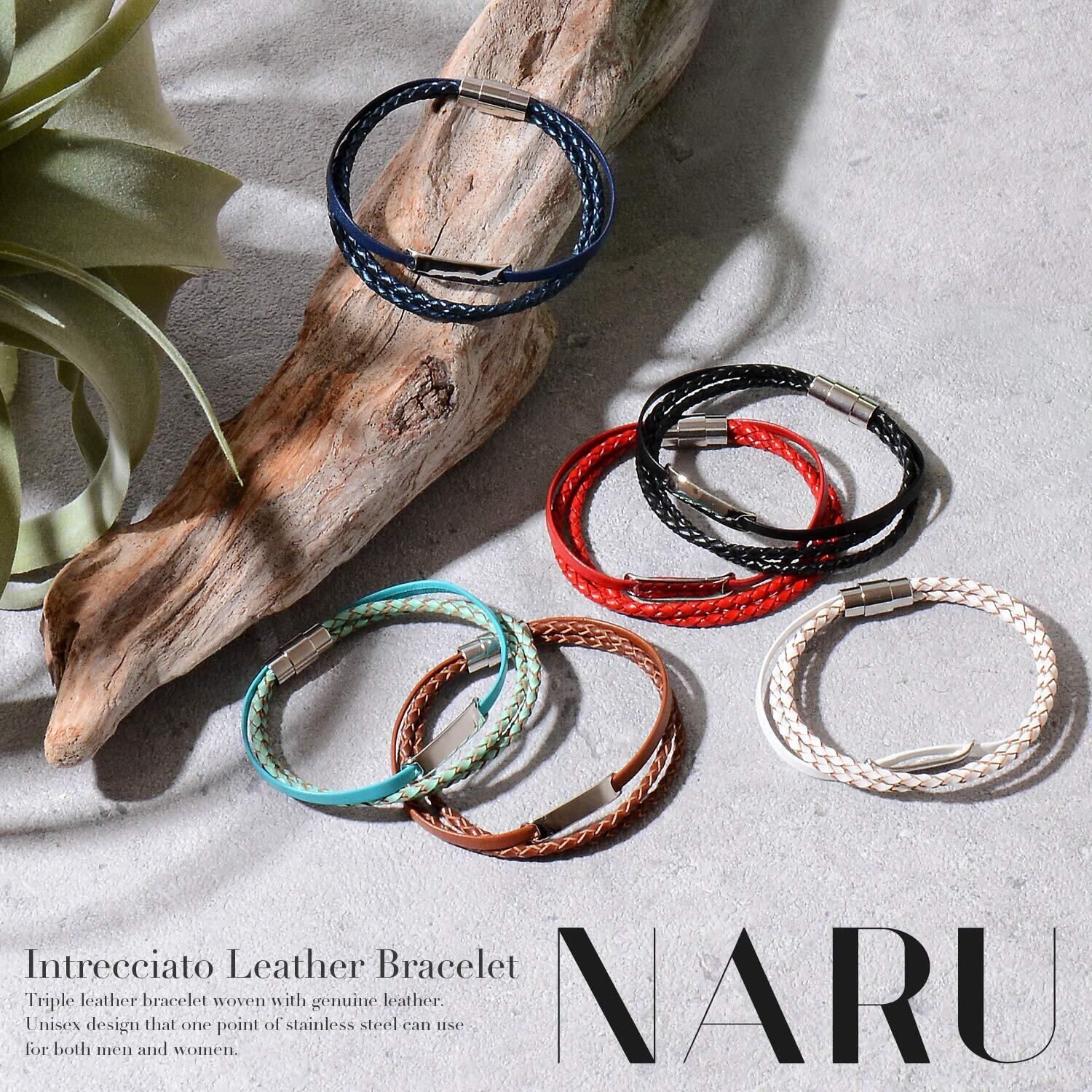 [ナル] 本革 編み込み レザー ブレスレット メンズ レディース ペア おそろい カップル 人気 革 ブランド 3連