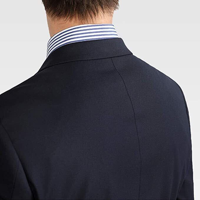 『メンズ ブレザー』生地特徴:ポリエステルとビスコース繊維の混紡生地で、スーツセットはドレープ感があり着用で不収縮です。その上、手触りと肌触りもスムースで、スキンケアです。