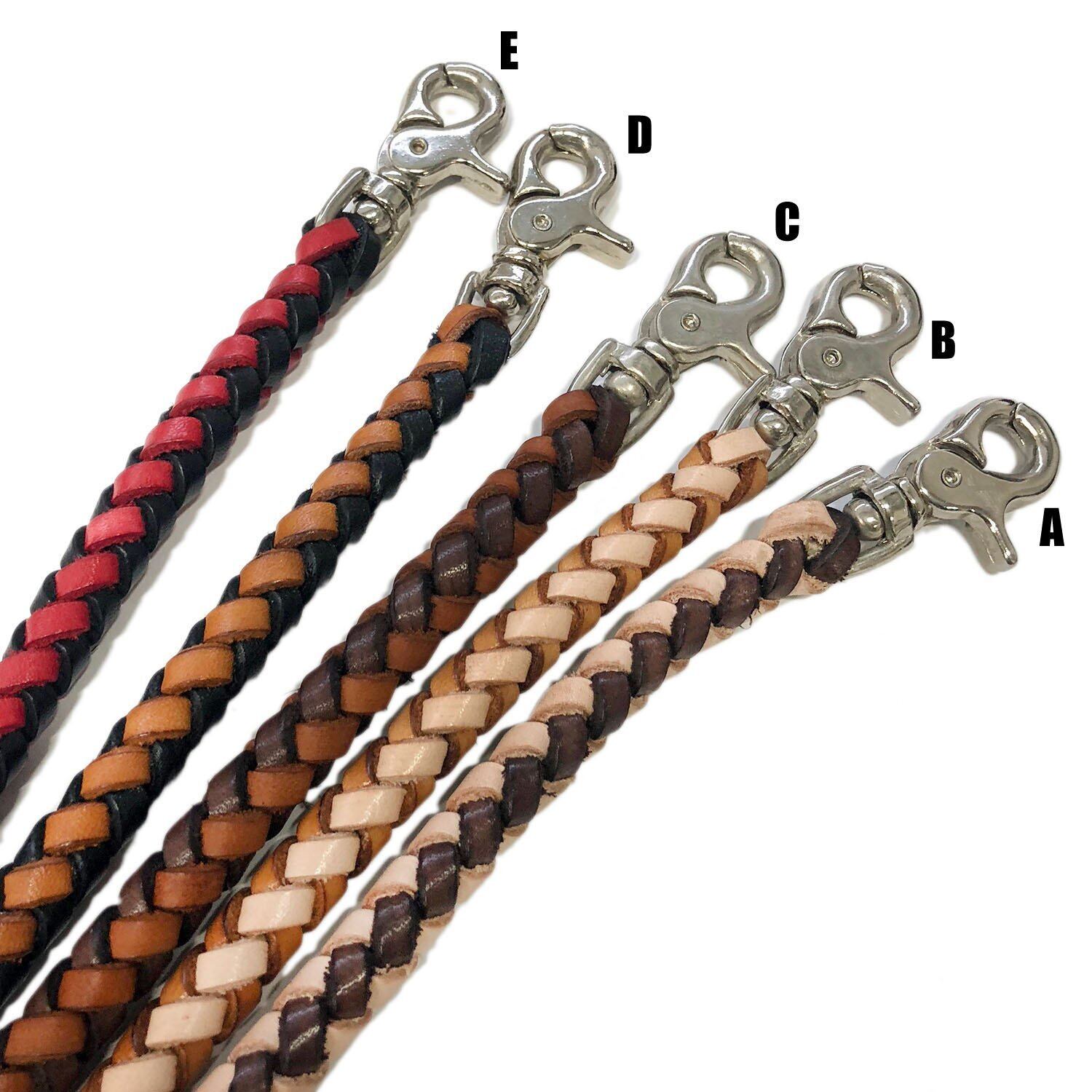 [ブルージェムズ] 【本革】 Handmade 手編み ショート レザー ウォレットチェーン バイカー THWC-008