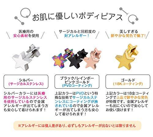 【2022最新】[ROQUE] ボディピアス 18G 16G 14G スターダブルフェイス ストレートバーベル (1個売)
