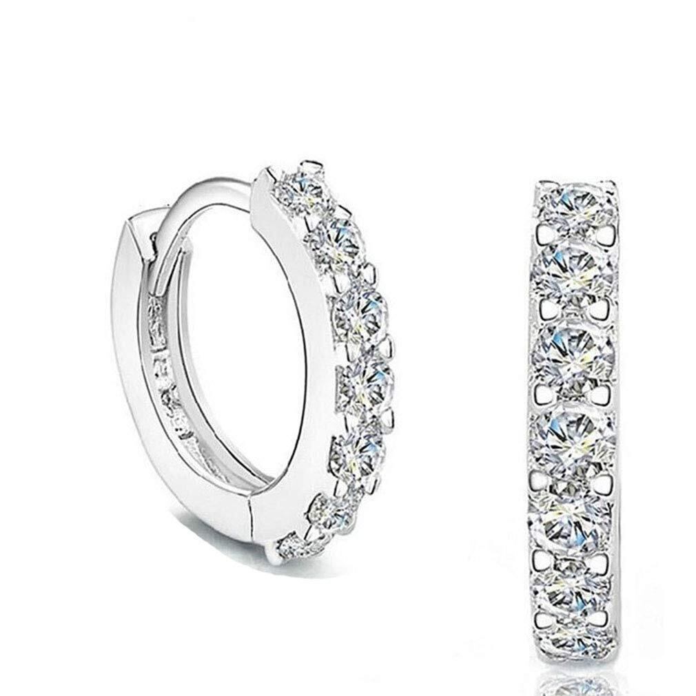 エタニティ クリスタル フープ ピアス 小粒 ブリリアントカット CZ ダイヤモンド 7連 シルバー ジュエリー シンプル デザイン ラウンド 両耳セット