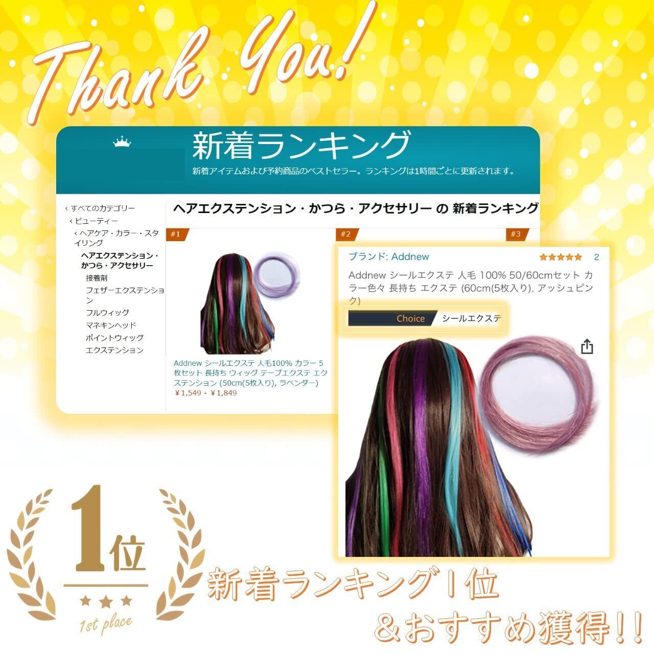 【在庫セール】Addnew シールエクステ 人毛 100% 50/60cmセット カラー色々 長持ち エクステ (50cm(3枚入り), アッシュグレー)