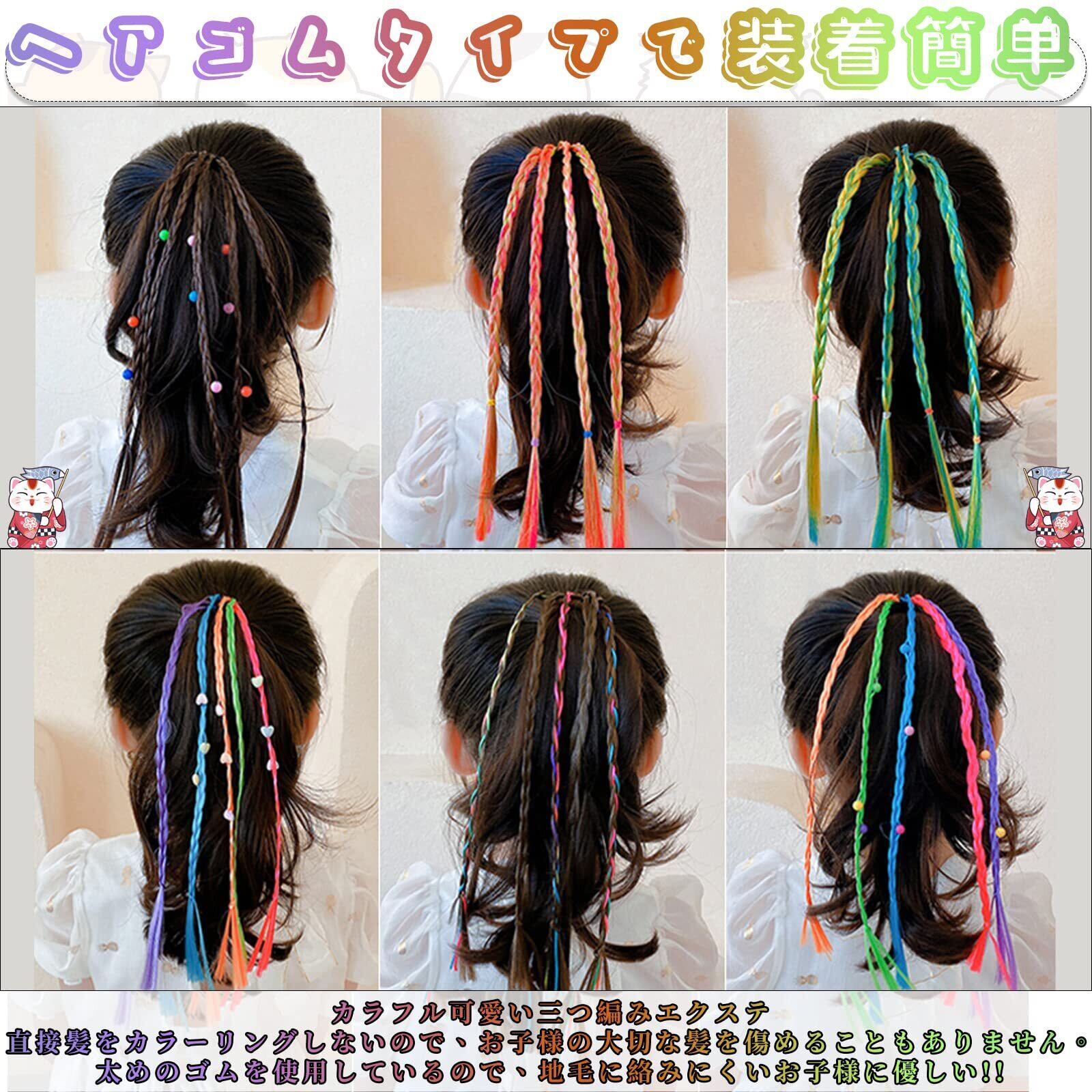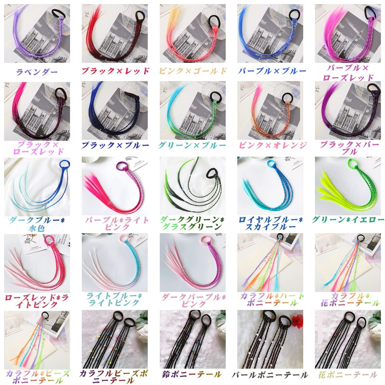 【新春セール】Hawkko ウィッグ エクステ 三つ編み 編み込み 子供 グラデーション ポニーテール つけ毛 ポイントウィッグ カラフル ウィッグ キッズ エクステンション ヘアエクステ ヒップホップ ダンス ゴム ひな祭り 発表会 パーティー 舞台用 派手髪 簡単装着 重ね付けOK 2個セット (カラフル*ビーズポニーテール)