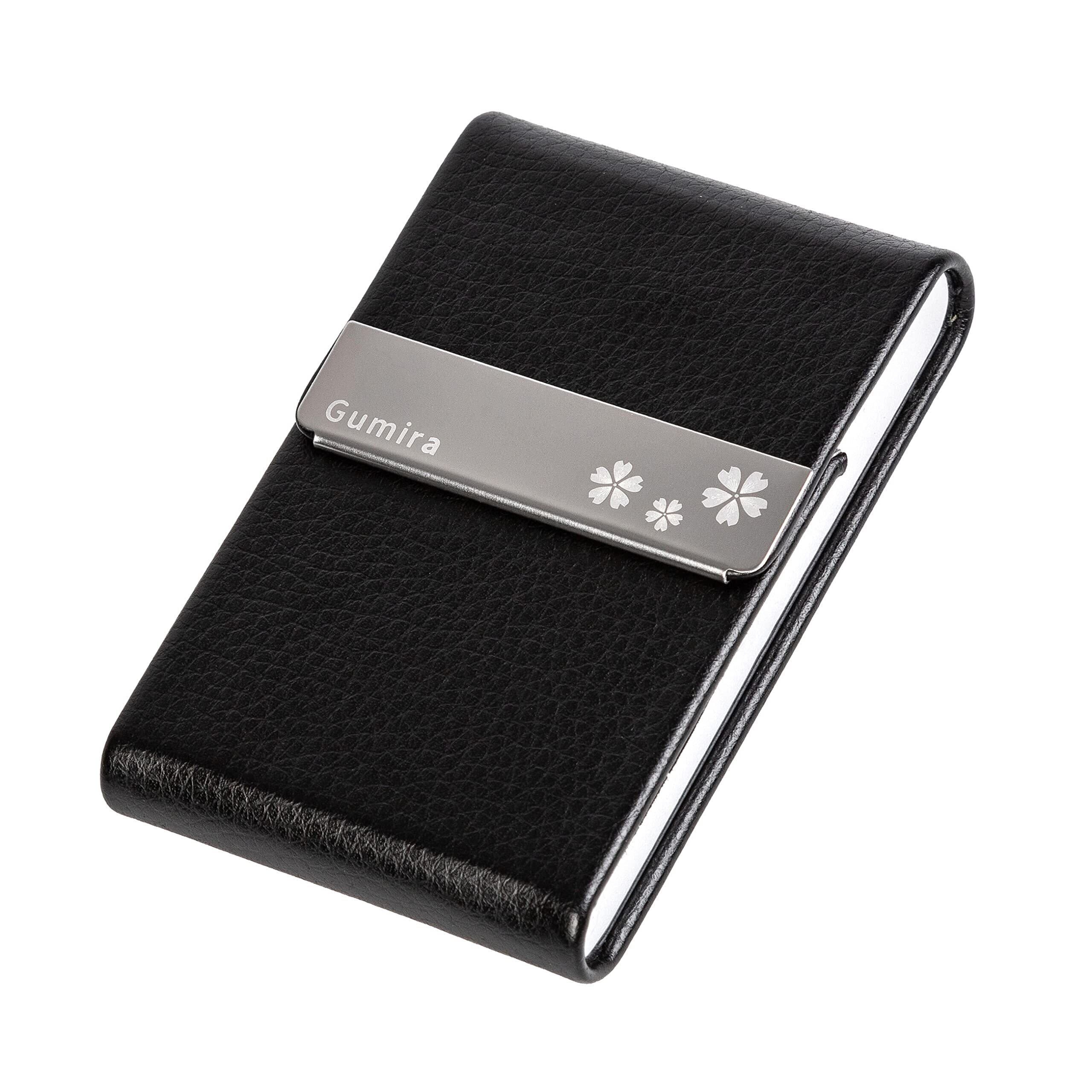 【新着商品】[Gumira] 名刺入れ メンズ レディース 選べる多色 名刺が折れない 専用の化粧箱が付き (ブラック, G桜)