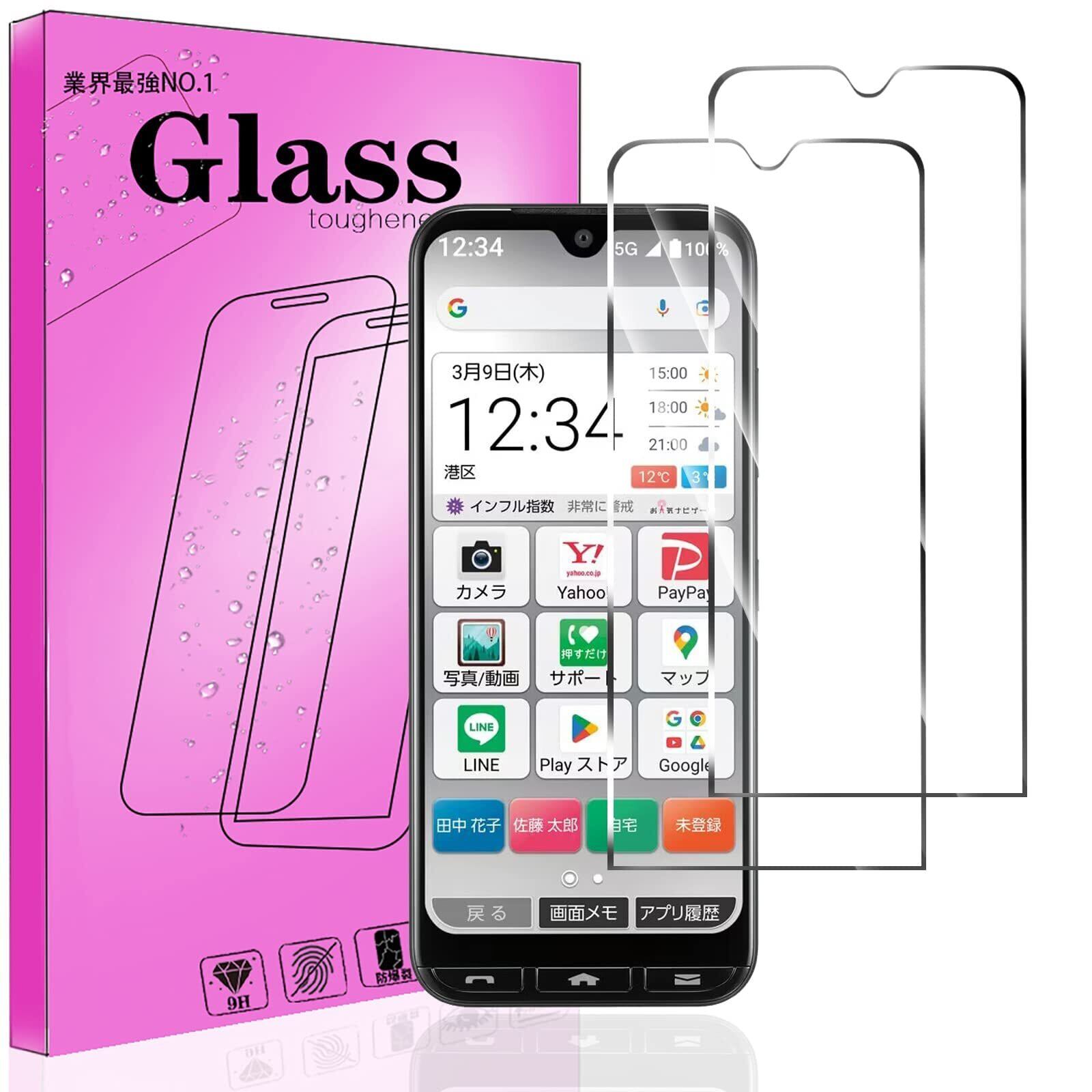 【特価商品】【2枚パック】対応 KYOCERA 京セラ かんたんスマホ3 A205KC 用のガラス フィルム 対応 京セラ あんしんスマホ KY-51B 用の強化保護ガラス FOR A205KC/KY-51B 用の液晶保護フィルム 【日本旭硝子素材AGC製品 硬度9H 気泡ゼロ飛散防止 衝撃吸収 指紋防止、簡単貼り付け】PCduoduo