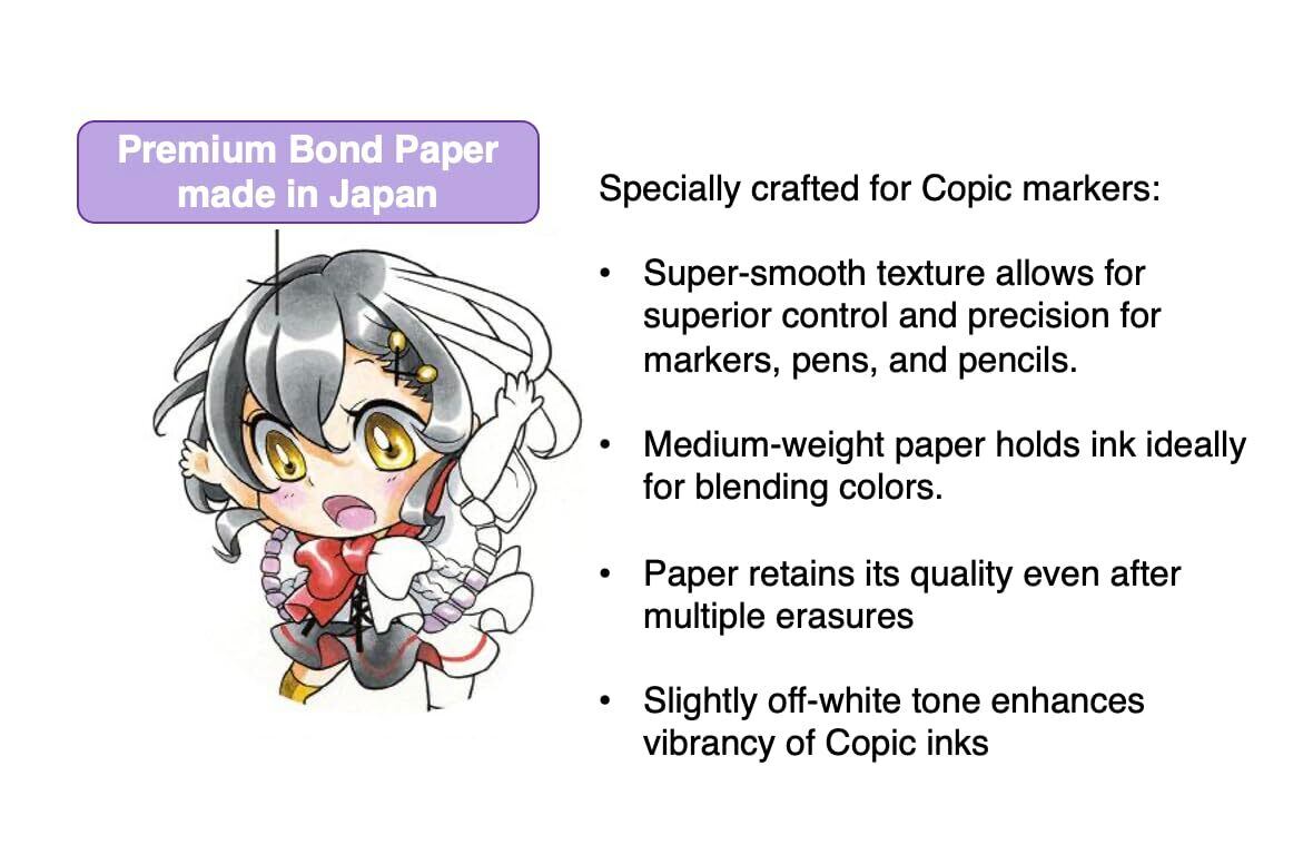 コピック ペーパーセレクション シリーズのスケッチブックです。紙はグラデーションや混色がしやすく、平滑度の高さからペン画にも向いている「特選上質紙」を使用しています。表紙はパールホワイトのすっきりとしたデザインです。