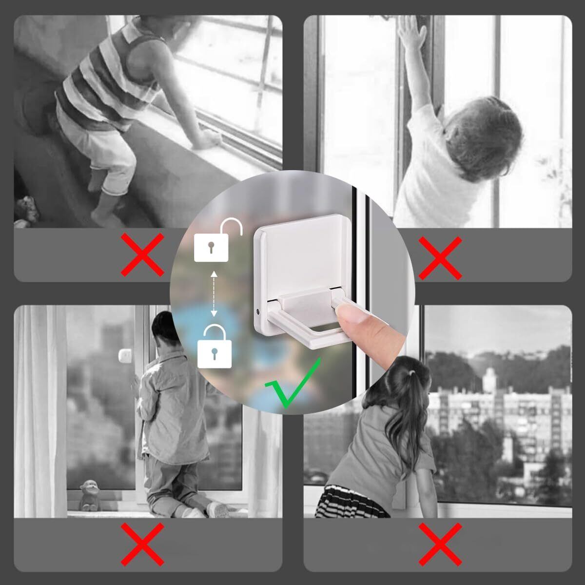 【安全対策】:取り付け後、子供、猫、犬がスライドドア、窓を開けるのを効果的に防止でき、子供の手がドアや窓に挟まれるのを防ぐことができる。