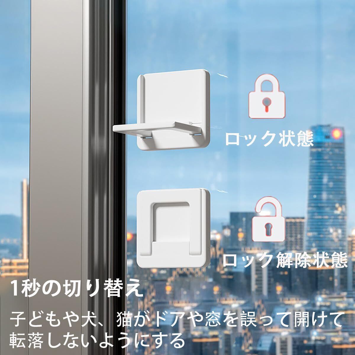 窓ロック 引き戸ストッパー ベビーガード 安全ロック ド スライド ドア ロック チャイルドロック ベビーガード ストッパー ドア 窓 扉 引き出し 開閉禁止 子供 赤ちゃん ペット 犬 猫 落下 転落防止 多機能 取っ手 取り付け簡単 (白-4個入り)