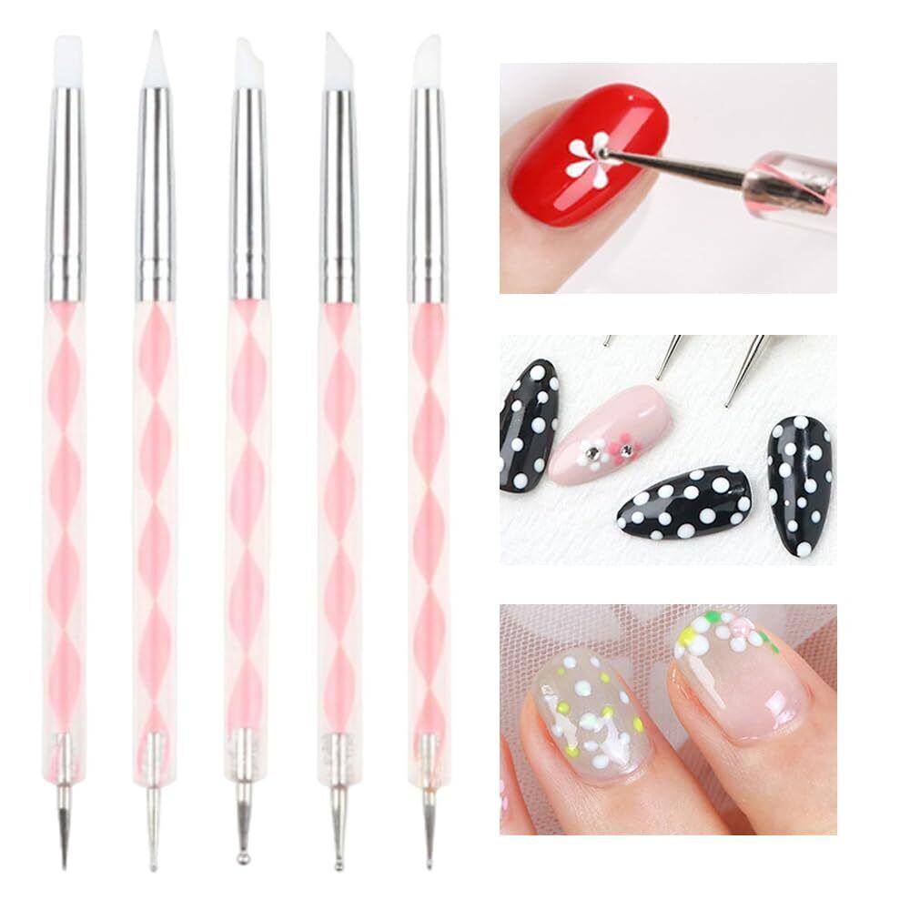 【使いやすいデザイン】このセットのデザインには人間工学の考慮がなされています。デュアルヘッドシリコーンドットフラワーニードルとネイルクリーニングブラシのブラシハンドルは、快適でスムーズな触感を提供し、使用時に快適な操作感を感じることができます。ブラシハンドルのデザインは、色落ちせず、滑りにくく。