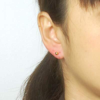 使用地金:K18イエローゴールド 刻印あり 丸玉部分、ポスト、ピアスすべての部分K18イエローゴールド