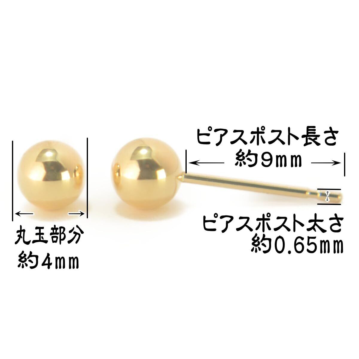 K18イエローゴールド丸玉ピアス 4mm ボールピアス 18金 K18 1ペア両耳販売 日本製 ニッケルフリー yokomountain (ダブルロックキャッチ)