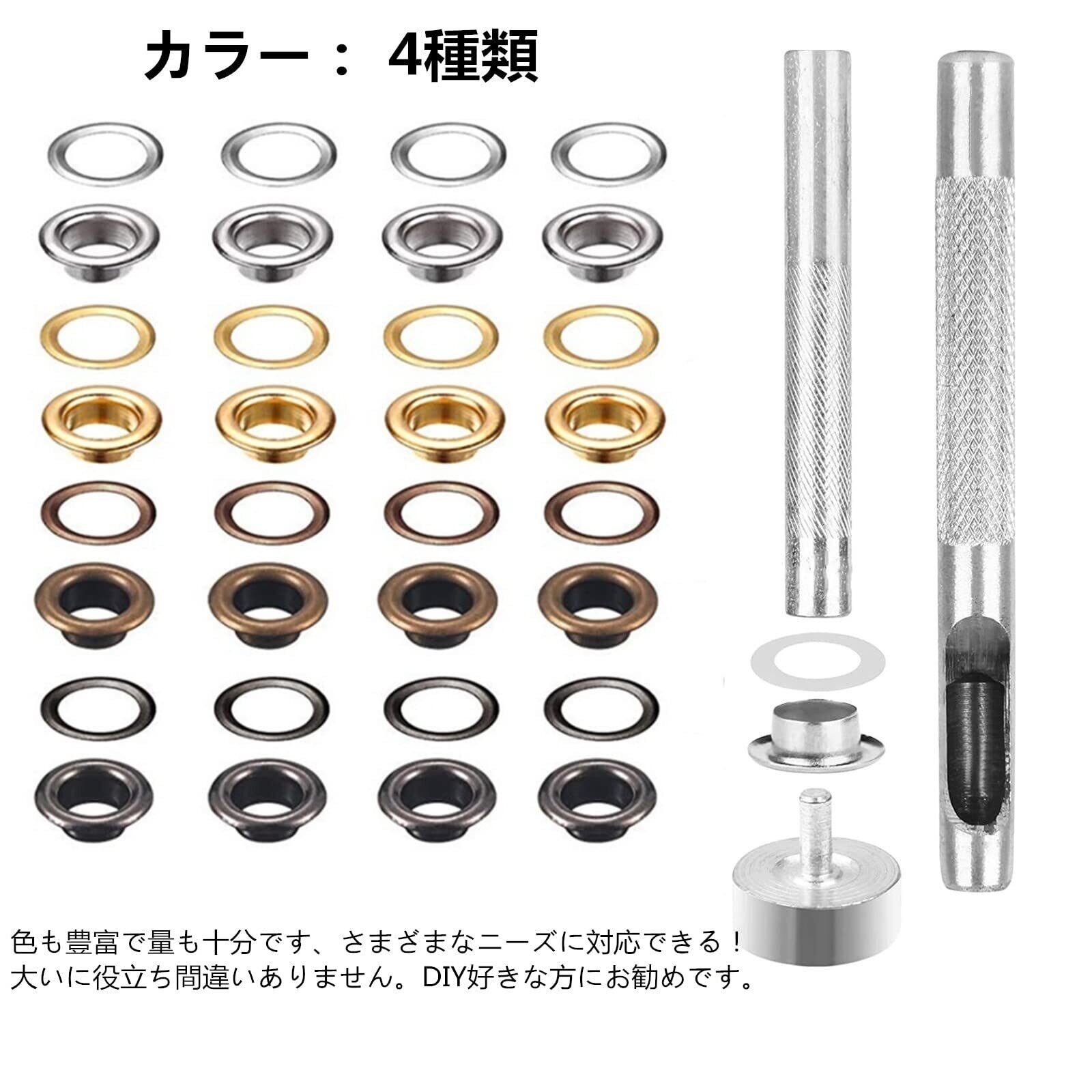 YFFSFDC レザークラフト 工具 ハトメキット 4種色400組 両面ハトメキット 底鋲 打ち具セット 6mm 穴あけ 打ち具 パーツ DIY 手作り ハンドメイド ベルト 布革細工 靴 収納ケース付き