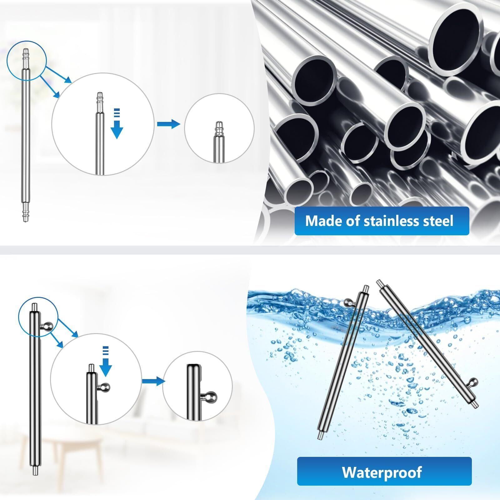 【良い素材】スプリングバーは丈夫で耐久性に優れた高品質のステンレス鋼でできており、防水性があり、長寿命で錆びにくく、侵食されにくいです。