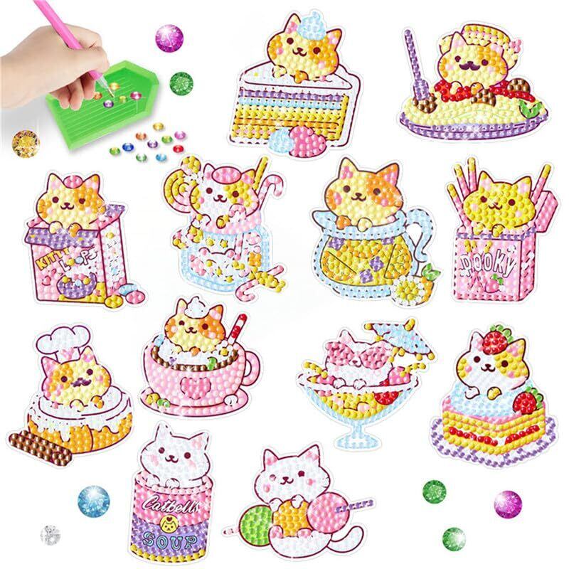 5D DIY キッズ ダイヤモンド ペインティング ステッカー セット 楽しい DIY ダイヤモンド アート ステッカー キッズ アート ステッカー DIY クリエイティブ ダイヤモンド ステッカー 子供 大人 初心者への素敵なギフト (子猫 ダイヤモンド アート ステッカーB)