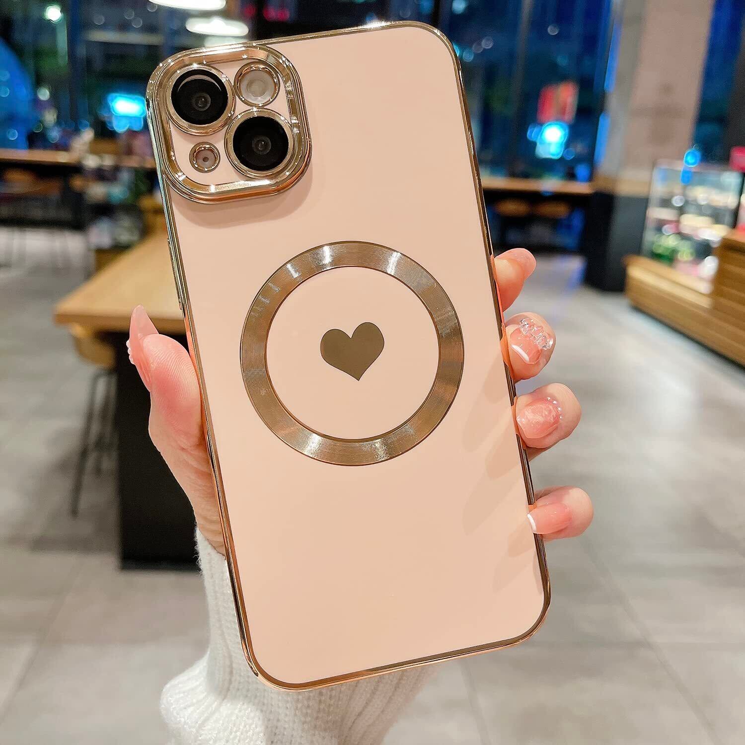 VIVINN【MagSafe対応 カメラレンズ保護】iPhone 15 ケース 韓国 可愛い ハート おしゃれ 人気 マグネット搭載 ワイヤレス充電対応 耐衝撃 全面保護 ストラップホール付き磁気充電 軽量 薄型 ソフトケース アイフォン 15 カバー マグセーフ対応 (iPhone 15,ピンク)