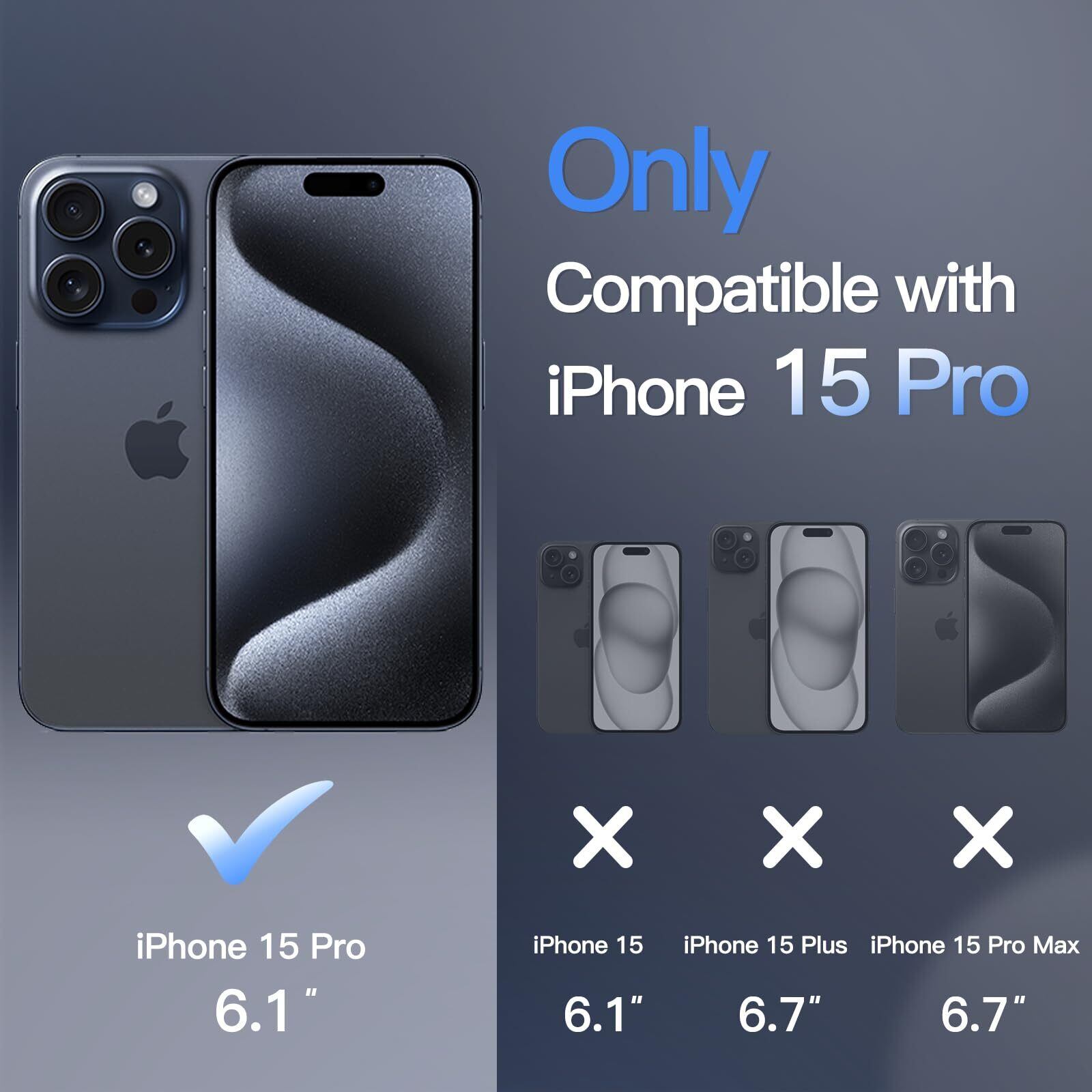 [完璧にフィット] iPhone 15 Pro 6.1インチ用に完璧に設計されており、携帯電話がかさばることはありません。注:15/15 Plus/15 Pro Maxには対応しません。完全に整列したカットアウトにより、カメラ、スピーカー、ボタン、その他のポートに完全にアクセスできます