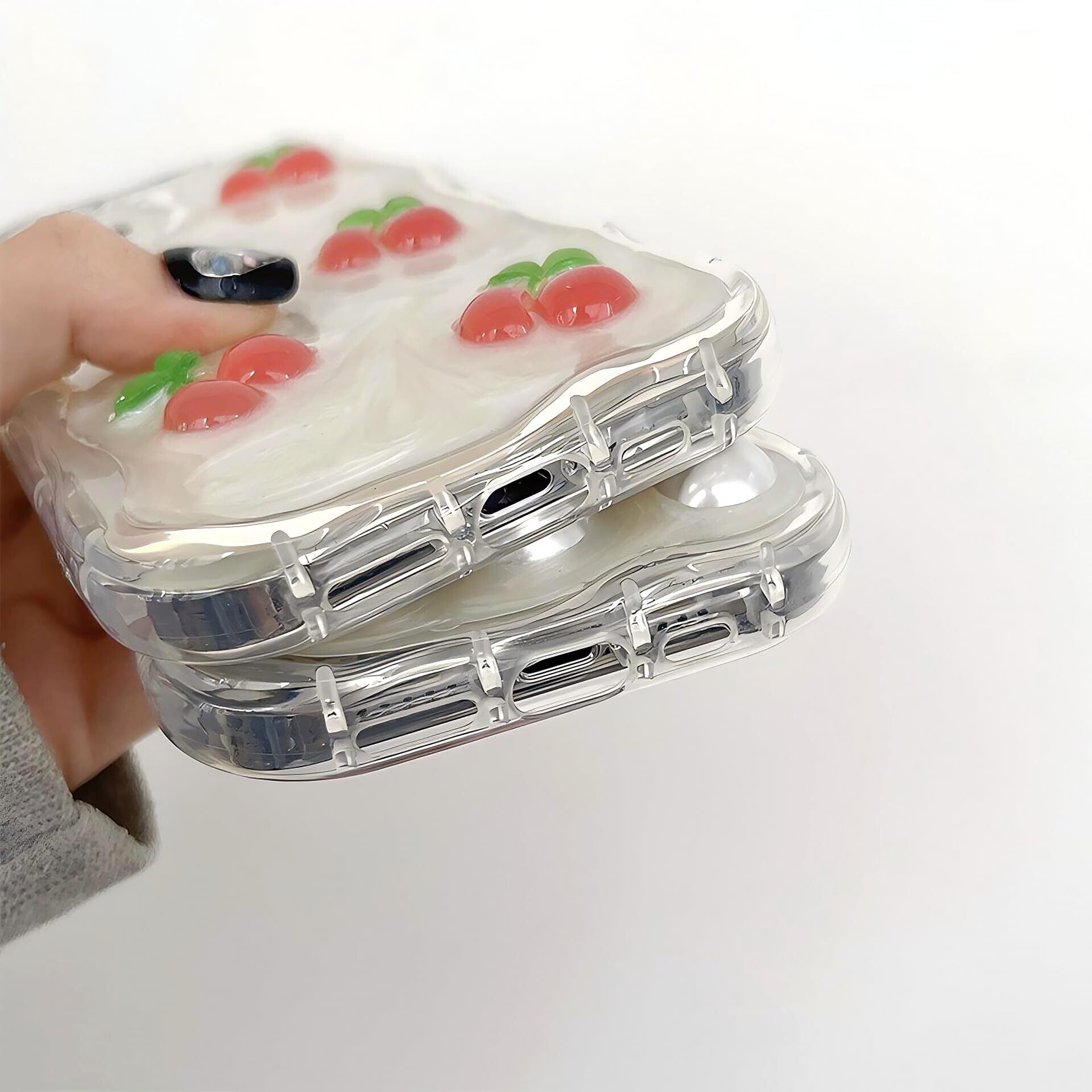 iphone 16Plus 用 ケース チェリー さくらんぼ 立体 クリア 韓国 かわいい いphoneケース 人気スマホケース キラキラ おしゃれ ランキング なみなみ シンプル 透明 ソフト アイフォンケース