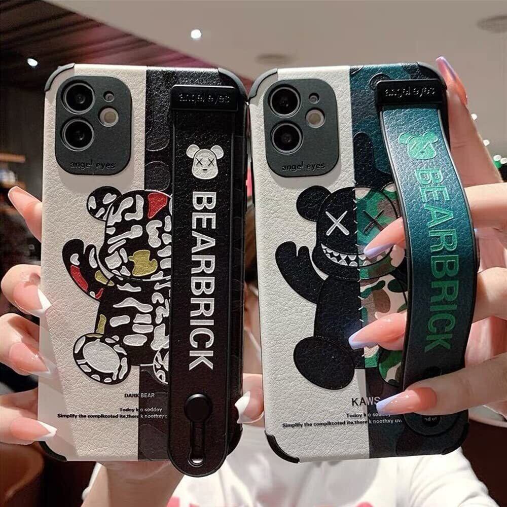 【在庫処分】iPhone 15 Pro 用 ケース カウズ 可愛い クール 迷彩 スマホケース リストレット キックスタンド アイフォン 15 Pro 用 ケース ストラップ 携帯ストラップ 保護カバー スタンド機能