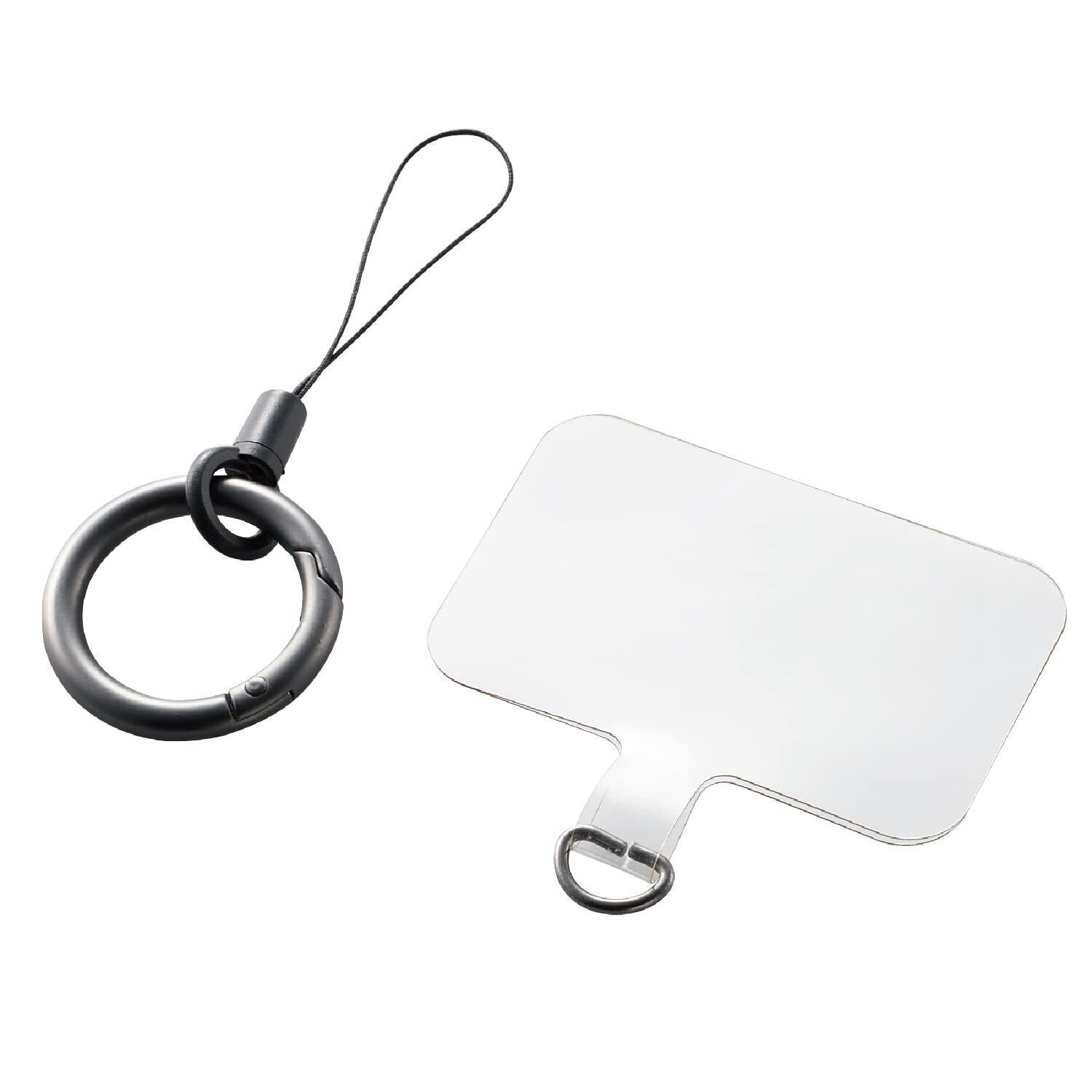 ■ ケースにシートを挟み込んでストラップホールを付加し、スマートフォンの落下を防ぐ外付けストラップホールシリーズのフィンガーリングストラップです。