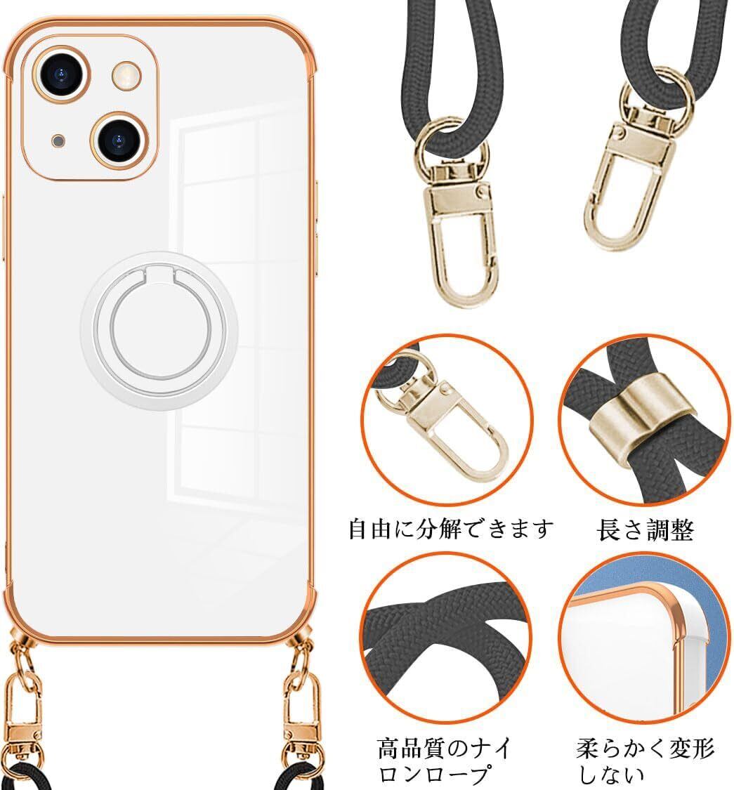 【人気商品】iPhone 15 用 ケース リング iphone 15 カバー ショルダー 新型韓国 可愛い リング 付きスタンド機能 薄型 軽量 耐衝撃 TPU シリカゲル メッキ加 ネック ショルダー ストラップ付き スマホ シリコン アイフォン15 用 スマホケース 首掛け 肩掛け 斜めかけ 縄掛けストラップ付き1.5MM 取り外し調節可能な 全面保護 黄変防止【縄掛け】