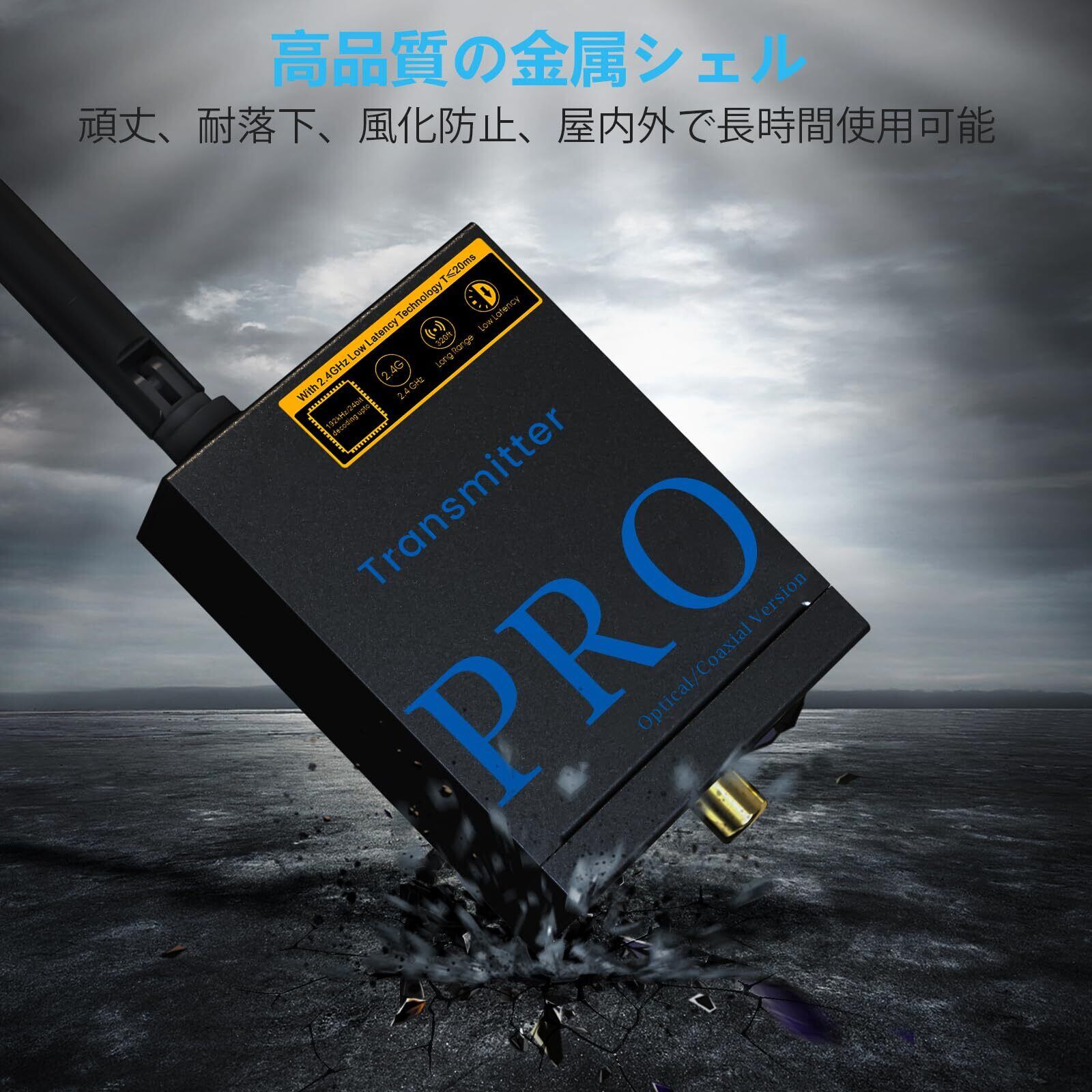 【プラグアンドプレイで使いやすい】1Miiワイヤレスオーディオトランスミッターレシーバーキットは、金属シェル、落下防止、衝突防止設計です。光/同軸/3.5mm(RCA)入力と出力をサポートし、テレビ、PC、AVレシーバーなどに簡単に接続できます。アクティブスピーカー、サブウーファー、サウンドバー、アンプ、ホームシアター、ステレオにワイヤレスでオーディオを転送します。これら2つを電源に接続すると、ワイヤレストランスミッターレシーバーが自動的にオンになり、自動的に接続されます。