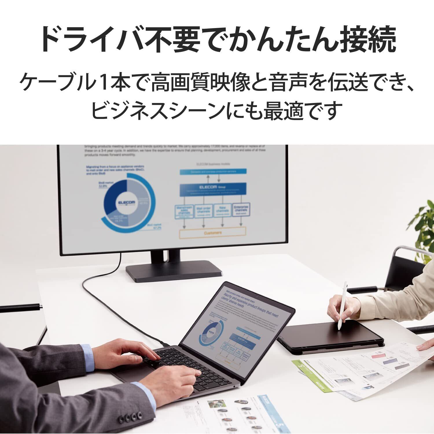 USB Type-C(TM)端子搭載パソコン、スマホ、タブレットなどの映像信号をHDMI入力端子を搭載したディスプレイなどに出力することができる映像変換ケーブルです。
