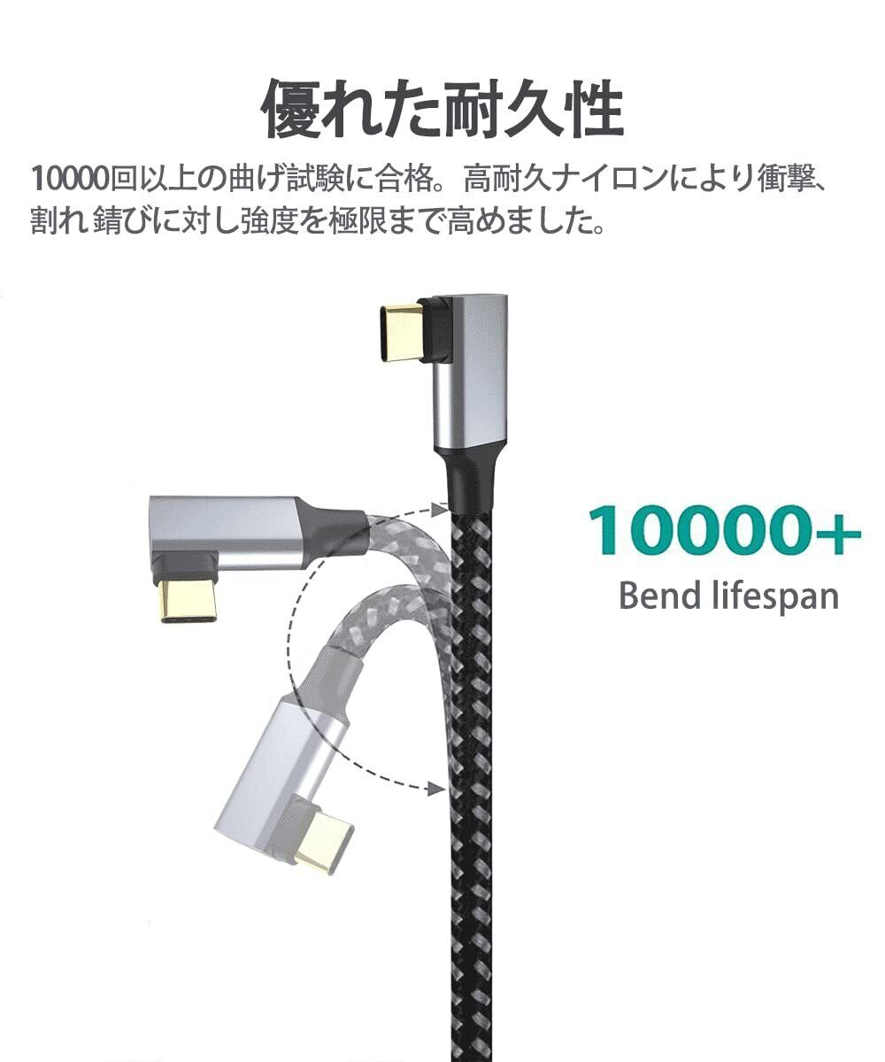 USB Type C 延長ケーブル L字 USB 3.1 Gen2(10Gbps) 100W PD急速充電 usb-c タイプc 延長コード 4K/60HZビデオ伝送 超高耐久ナイロン編み MacBook、Pad、Surface、Switch、Xperia、Galaxy、Pixel等タイプc機種対応 (3m)