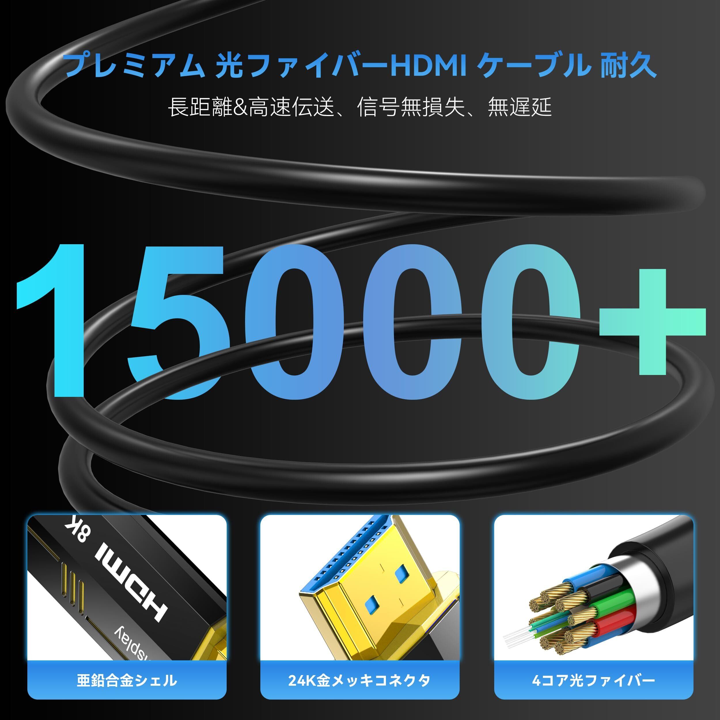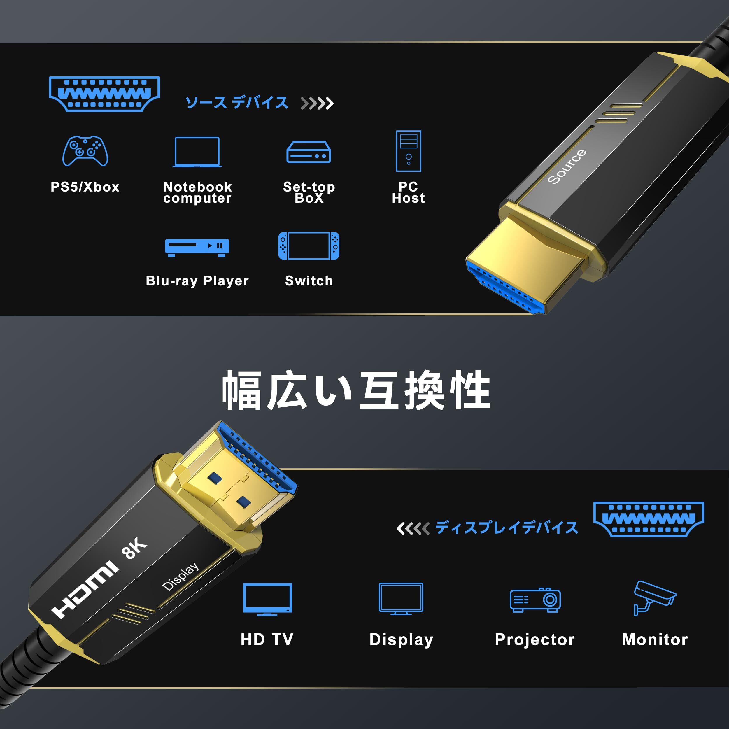8K 4K 光ファイバーHDMI ケーブル 20M 48Gbps ウルトラハイスピード HDMI 2.1 ケーブル超高速 8K@60Hz 4K@120Hz HDR DTS:X Dolby Atmos 「と互換性のある」PS5/Switch/Xbox/パソコン/モニター/テレビなど対応