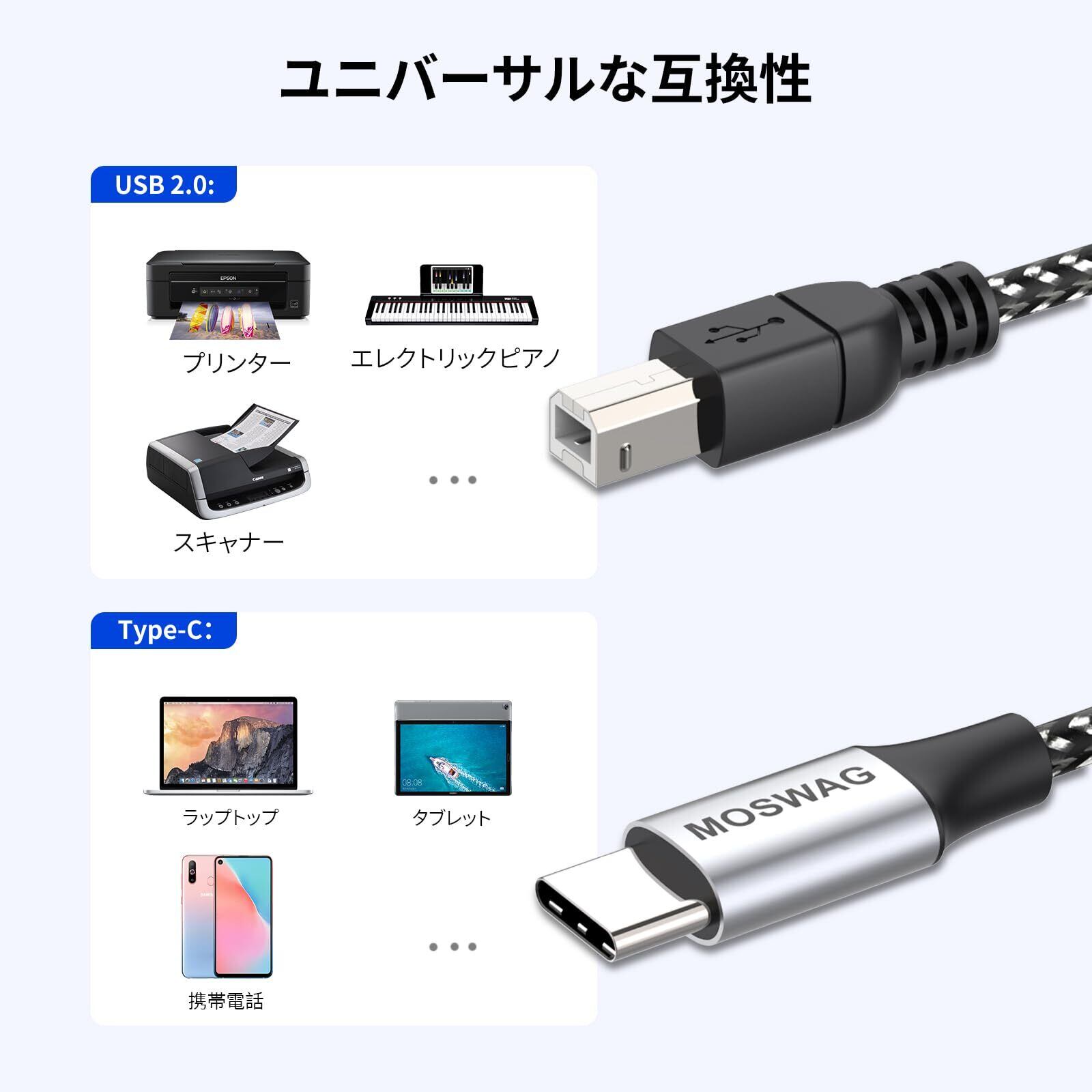 MOSWAG MIDI USB 変換ケーブル(USB-A-USB-B)USB Type CプリンターケーブルオーディオDAC ミキサー MIDIキーボード、 電子ピアノ、 DJコントローラ 、プリンター 、ス キャナー、 FAXマシン 、ファックスなどに適用1m(1メートル)
