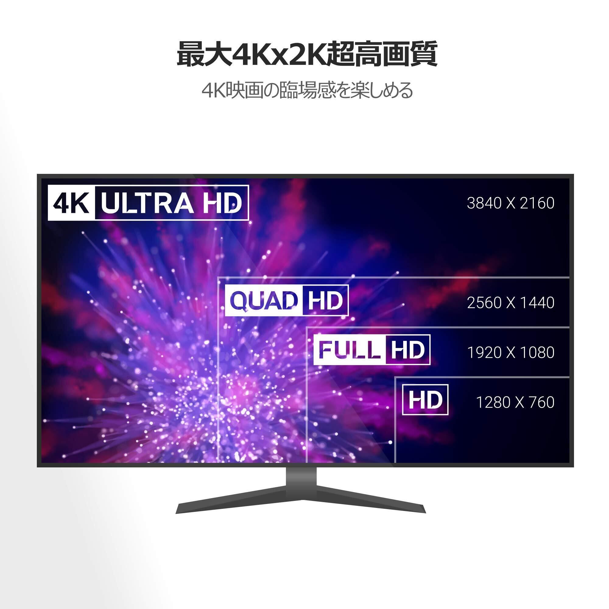 【高解像度】マイクロHDMI HDMI 変換アダプターは4096x2160、3840x2160、2560x1600、2560x1440、1920x1200及び1080pを含めて、最大4Kx2K (UHD)の解像度に対応しています。