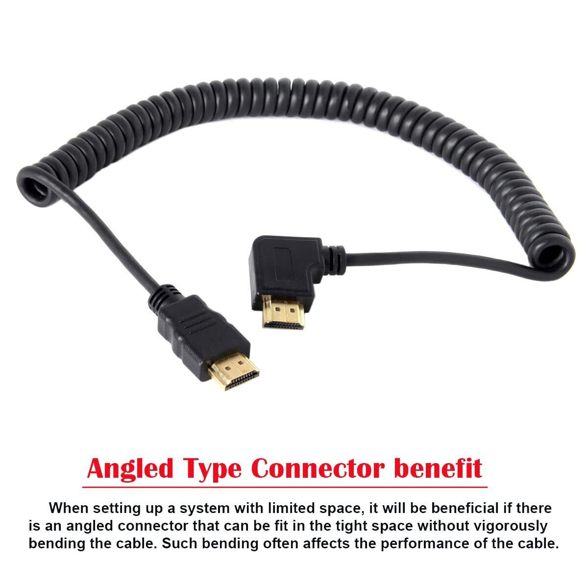 Cablecc 90度直角HDMIからHDMIストレッチスプリングケーブル HDTV DVB DVD PC 1.2m