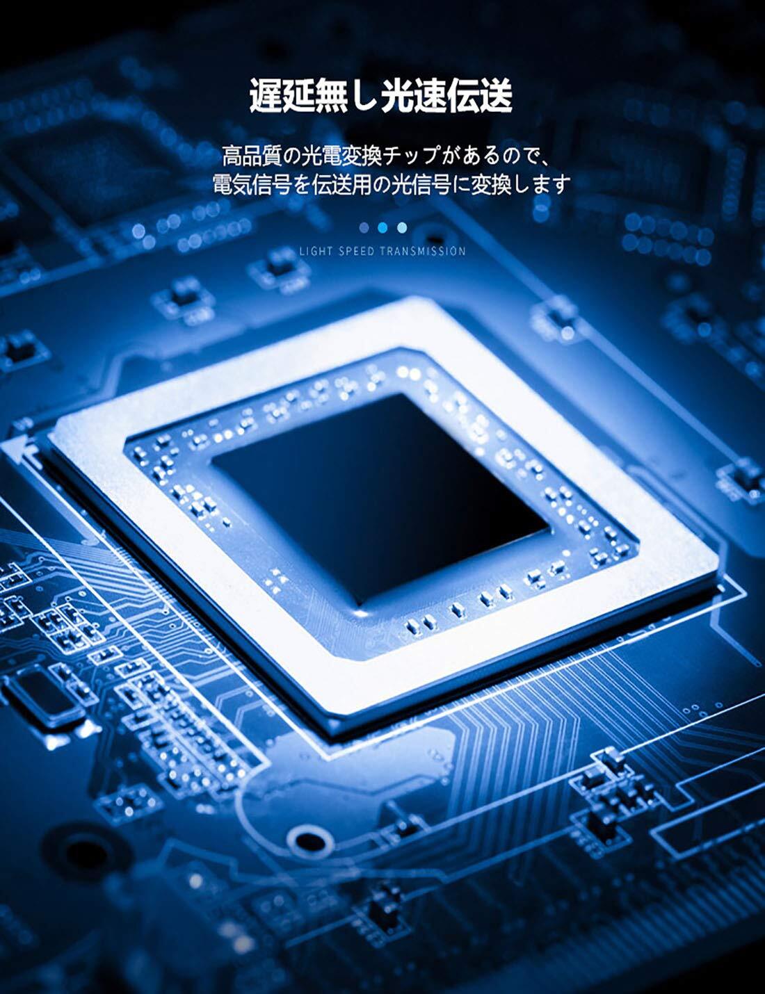 【長距離安定性輸送&高速ロスレス伝送】:HDMI光ファイバーケーブルは18Gbpsの伝送帯域幅を持っています。YUV4:4:2色は高い程度復元できます。Dolby Vision Dolby Atmos / Dolby True HD /DTS5.1/7.1などをサポートします。HDMI光ファイバーケーブルはSourceとDisplay高速チップセットがあります。HDMIの高速伝送速度と長距離伝送要求をできます。