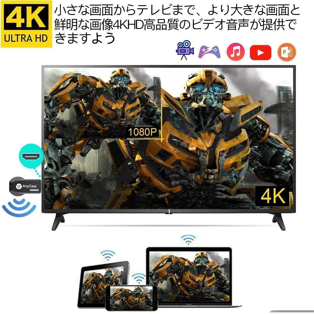Anycast クロームキャスト ミラーキャスト4K 無線HDMI レスモード切替え不要の簡単接続 大画面/動画転送 HDMIミラーキャストスマホテレビ接続 iOS&Android&Windows&MAC OS対応 Miracast/AirPlay/Chrome アプリ互換性あり-C02
