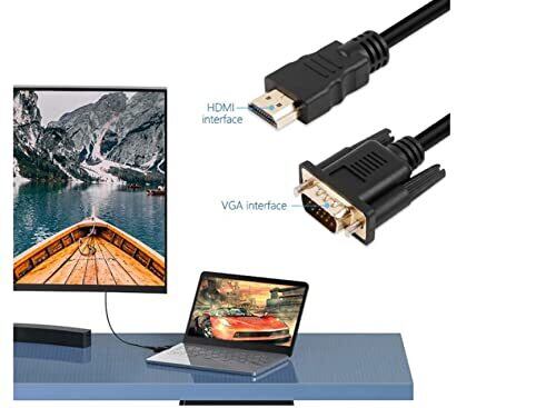 HDMI to VGA 変換ケーブル 1.8M 1080P HDMIオス to VGAオス変換アダプタケーブル 金メッキコネクター 音声転送 コンピューター/デスクトップ/ノートパソコン/PC/モニター/プロジェクター/HDTV/Chromebook、Raspberry Pi/Roku/Xboxなどに対応