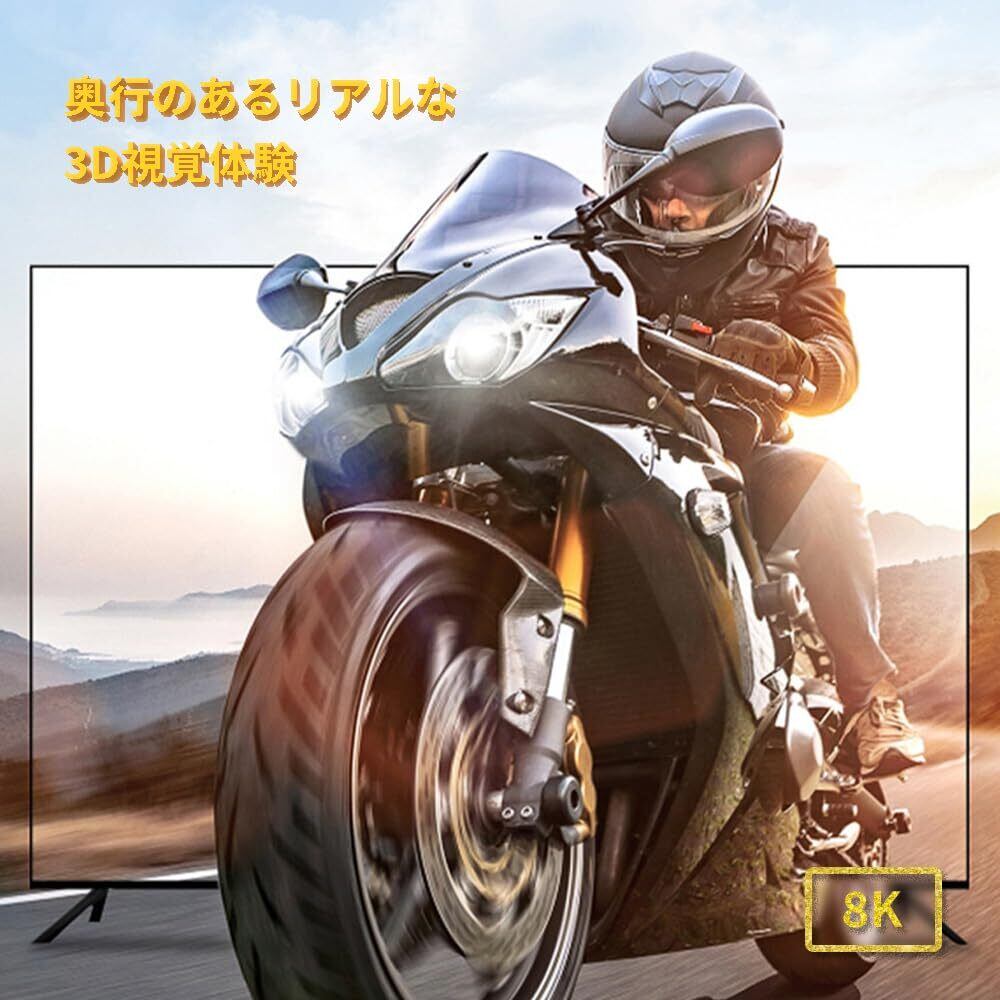【60Hz 8Kの画質出力】:8K HDMI ケーブルは8K 60Hzの高解像度及びリフレッシュレートに対応します。4K@120Hz及び4K@60Hzとの下位互換にもサポートし、超高精細ビデオ画面体験と3D視覚効果を提供します。
