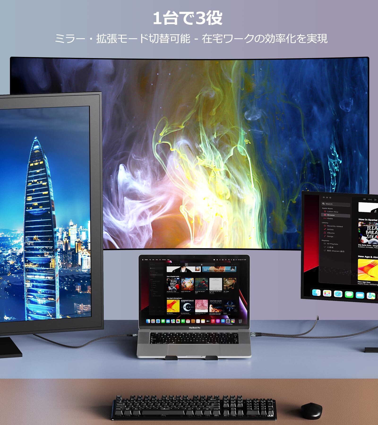 【4K@60Hz高解像度】本USB Type-C to HDMIケーブルは、最大3840×2160@60Hz(4K UHD)およびフルHD 1080p@60Hzの高精細映像出力をサポート。オーディオと映像を完全同期で伝送し、ミラーモード(画面複製)と拡張モード(デュアルディスプレイ)の両表示機能に対応しています。ゲームプレイと動画視聴を同時に行ったり、作業スペースを広げて効率的に作業したりすることが可能です。4K大画面ならではの高精細な映像で、ビジネスプレゼンテーションから映画鑑賞、ゲームエンターテインメントまで、あらゆるシーンで活用いただけます。4K解像度の大画面で、劇的な映像体験をお楽しみいただけます。
