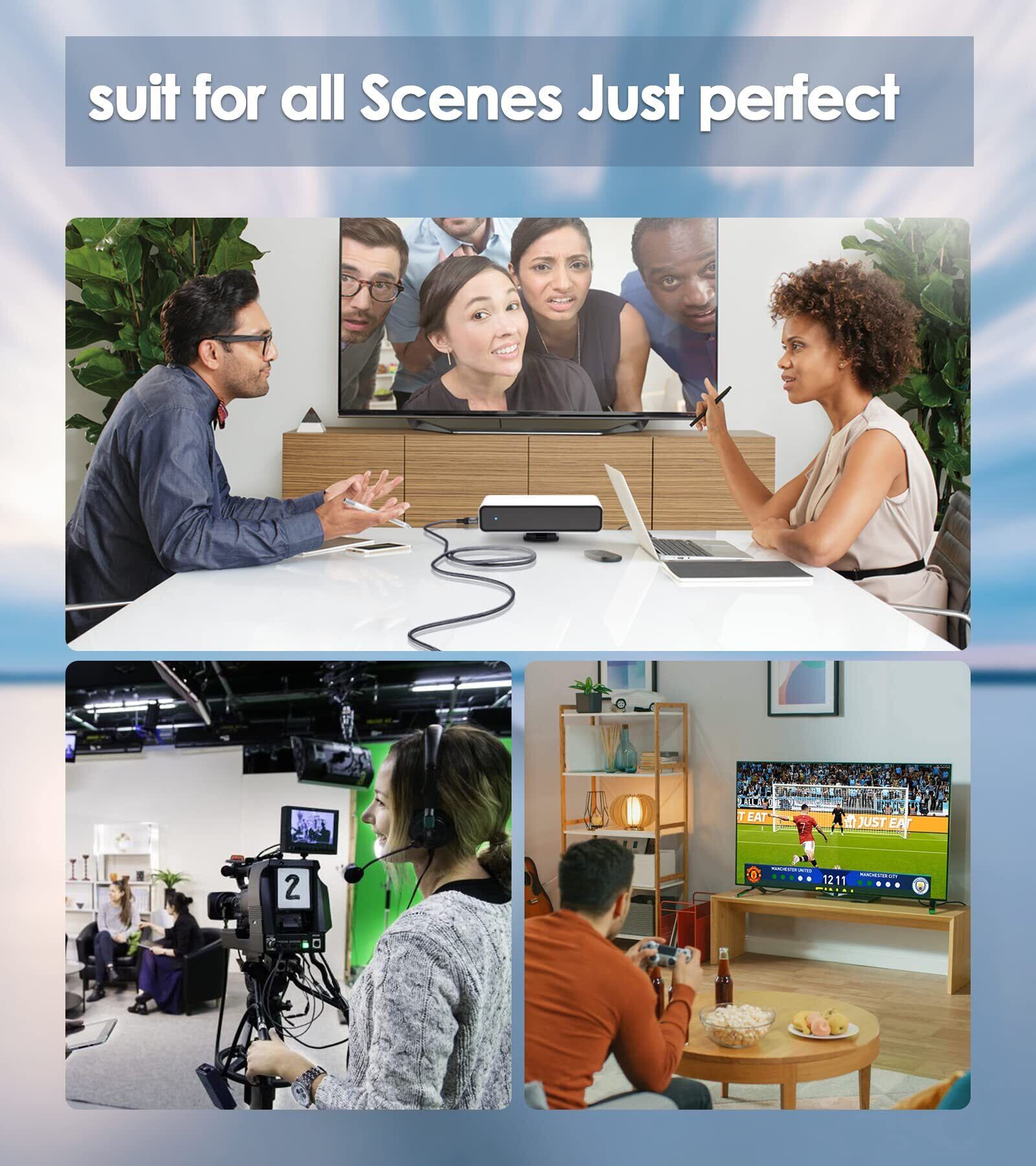 【ユニバーサル対応】:8K UHD TV、HDTV、QLED TV、Moinitor、プロジェクター、プレイステーション、ブルーレイ、ラップトップ、PC、DVD、PS5,PS3、PS4 Pro、Xbox 360、Xbox one S、Apple TV,Samsung TV、Sony TV、Netflix、Dish Hopper、Vizio、Roku,ブルーレイプレーヤーなどに対応 大画面、プラグアンドプレイで究極のHD 8K 体験をお楽しみください。