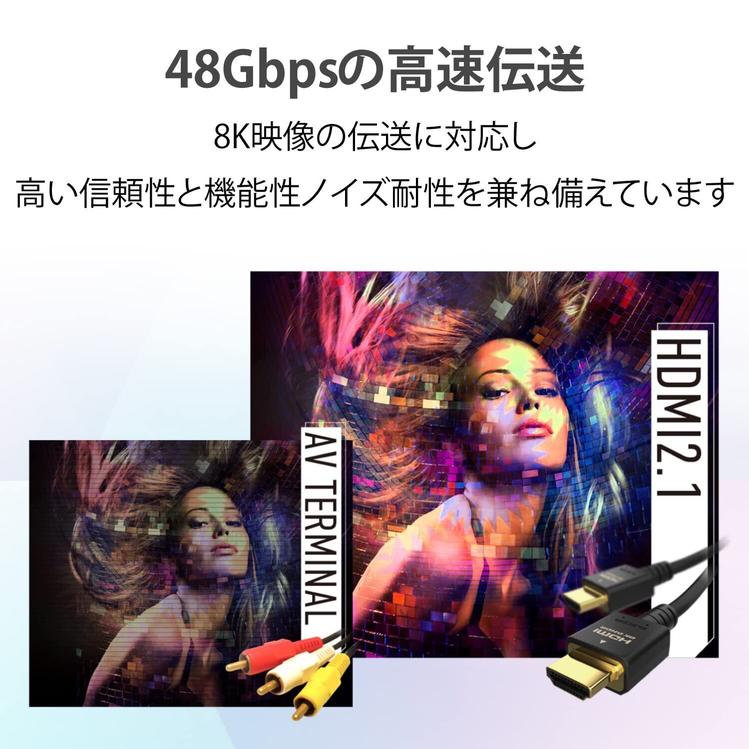 8K(60P)/4K(120P)に対応し、超高解像度かつ更になめらかな映像の伝送が可能なUltra High Speed HDMI(R) Cable規格認証済ケーブルです。