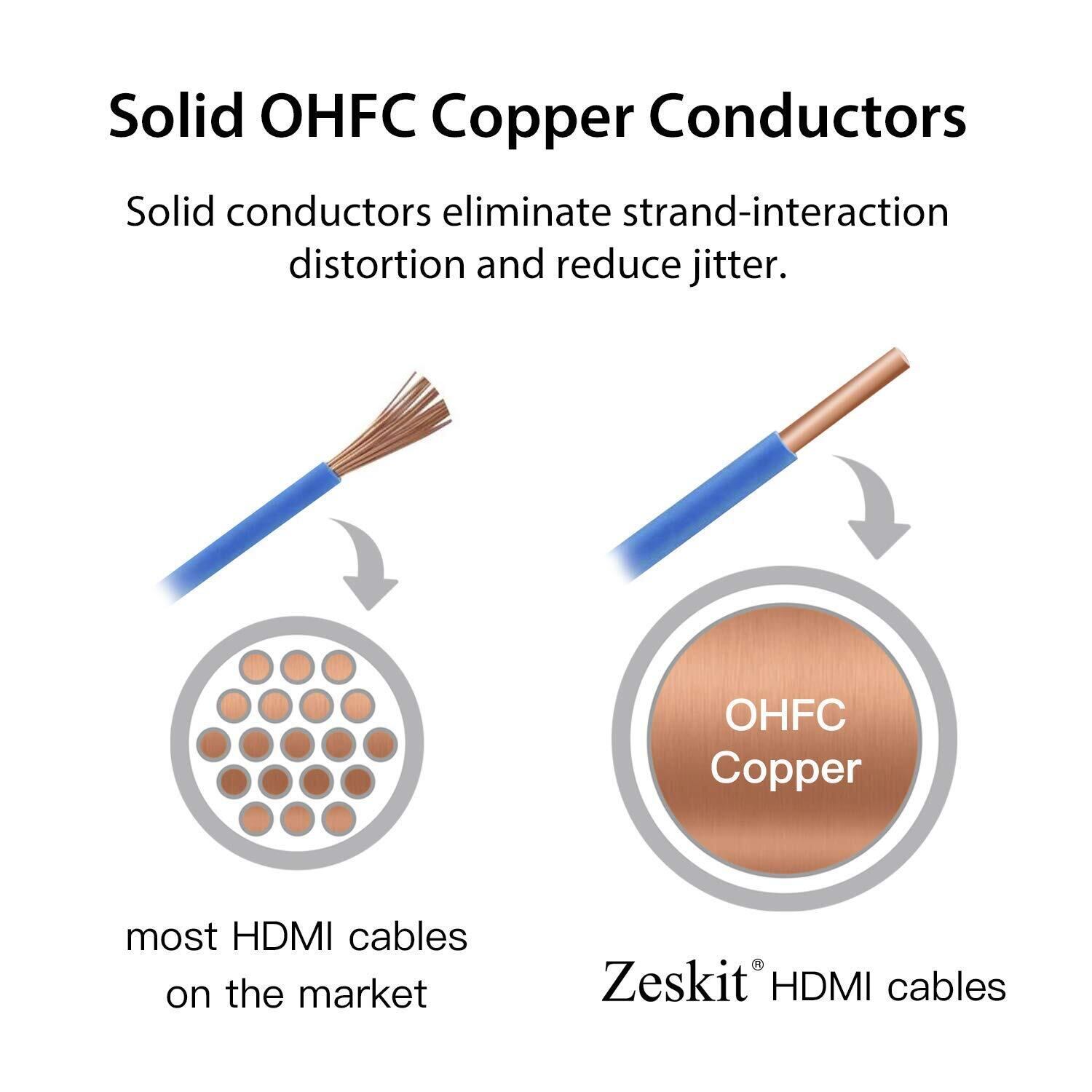 Zeskit MAYAシリーズの超高速HDMIケーブルは、4Kp50/60/100/120や8Kp50/60などの高解像度ビデオモードや、eARCやVRRなどの新機能を確実にサポートするように設計された厳しい仕様に準拠しています。 ケーブルは最新の国際EMI規格の要件を超え、Wi-Fiなどのワイヤレスサービスとの干渉の可能性を大幅に低減します。 これらは、ビデオとオーディオのパフォーマンスの向上、新しいEMI特性の考慮など、高帯域幅に依存する機能を確実に提供するための最良の方法です。