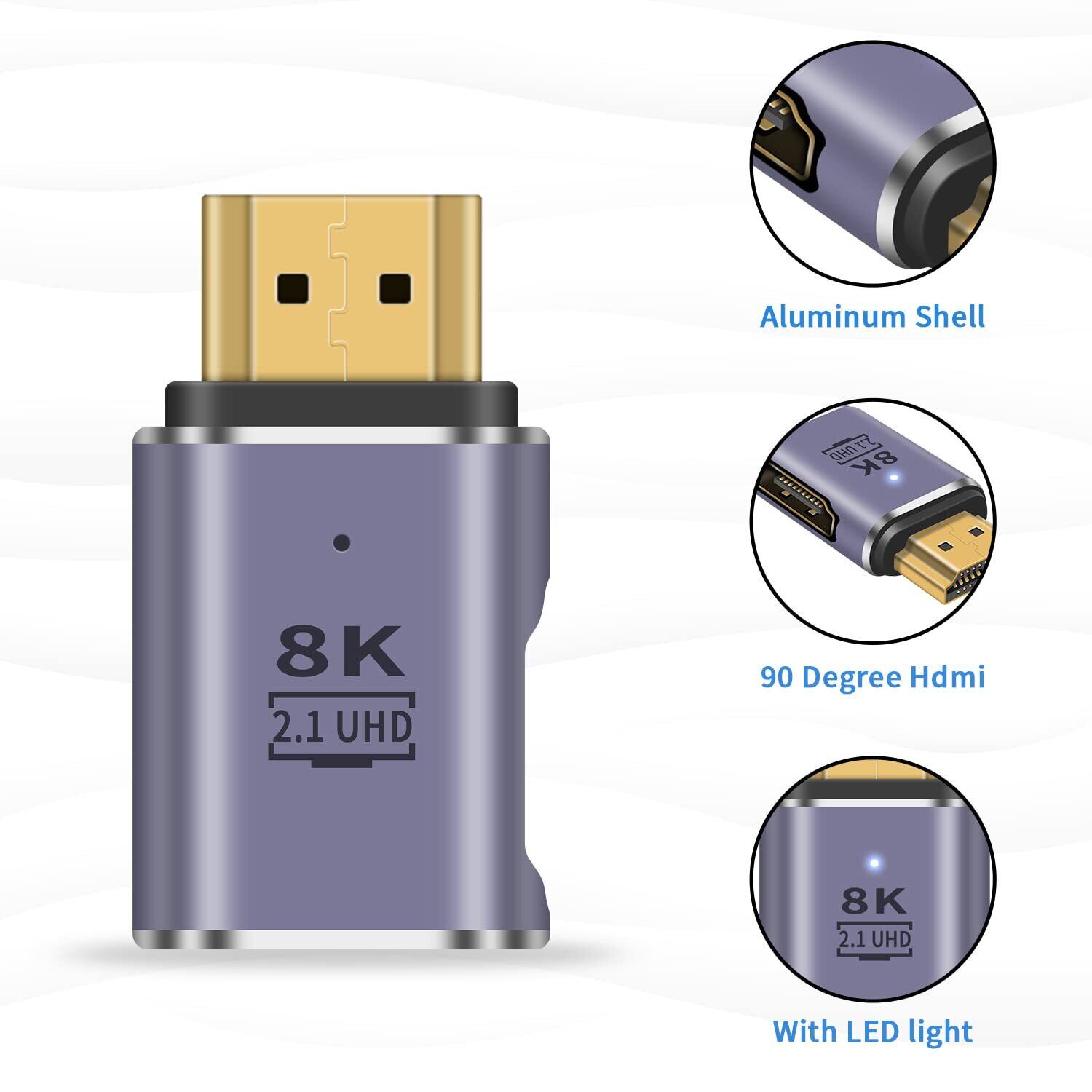 8K HDMI L型変換アダプタ : 8K解像度。 HDMI 90度 延長アダプタは8K 60Hz / 4K 120Hzのビデオ解像度をサポートし4096x2160、3840x2160、2560x1600、2560x1440、1920x1200及び1080pにも対応、お使いのデバイスの画面拡張又は複製を実現できます。