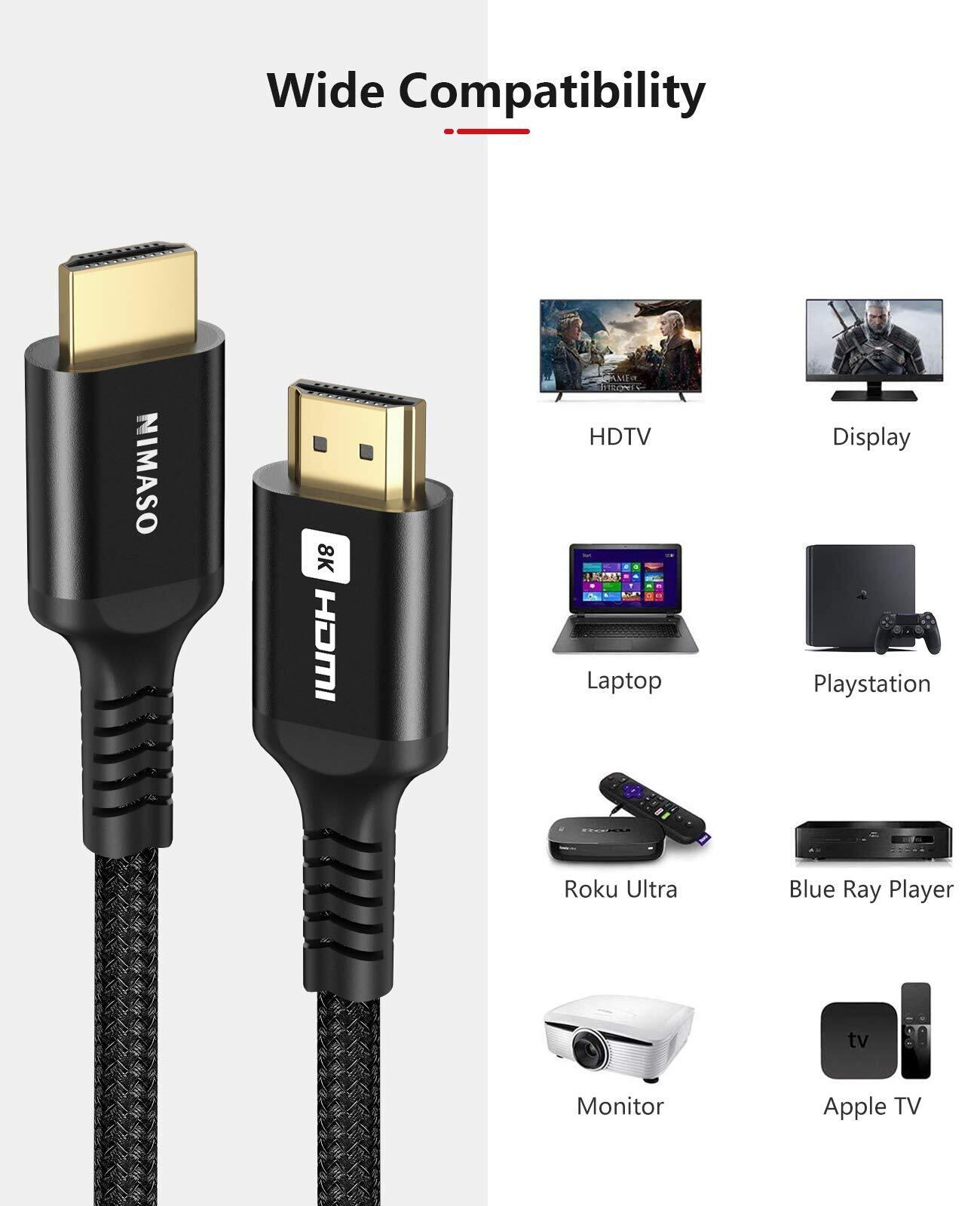 NIMASO 8K HDMI ケーブル HDMI 2.1規格 ハイスピード 48Gbps 8K@60Hz 4K@120Hz 超高速 UHD HDR HDCP eARC 3Dイーサネット ARC 対応 (タイプAオス - タイプAオス) (2.0m) NCA21D228