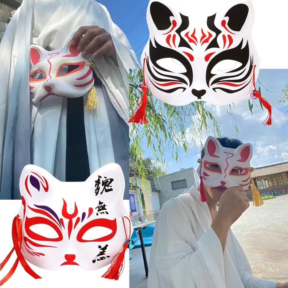 【滑らかな表面】狐面は滑らかな曲線のデザインで、顔のラインにぴったりと合わせて、着心地がよいです。ほとんどの青少年と大人に似合います。