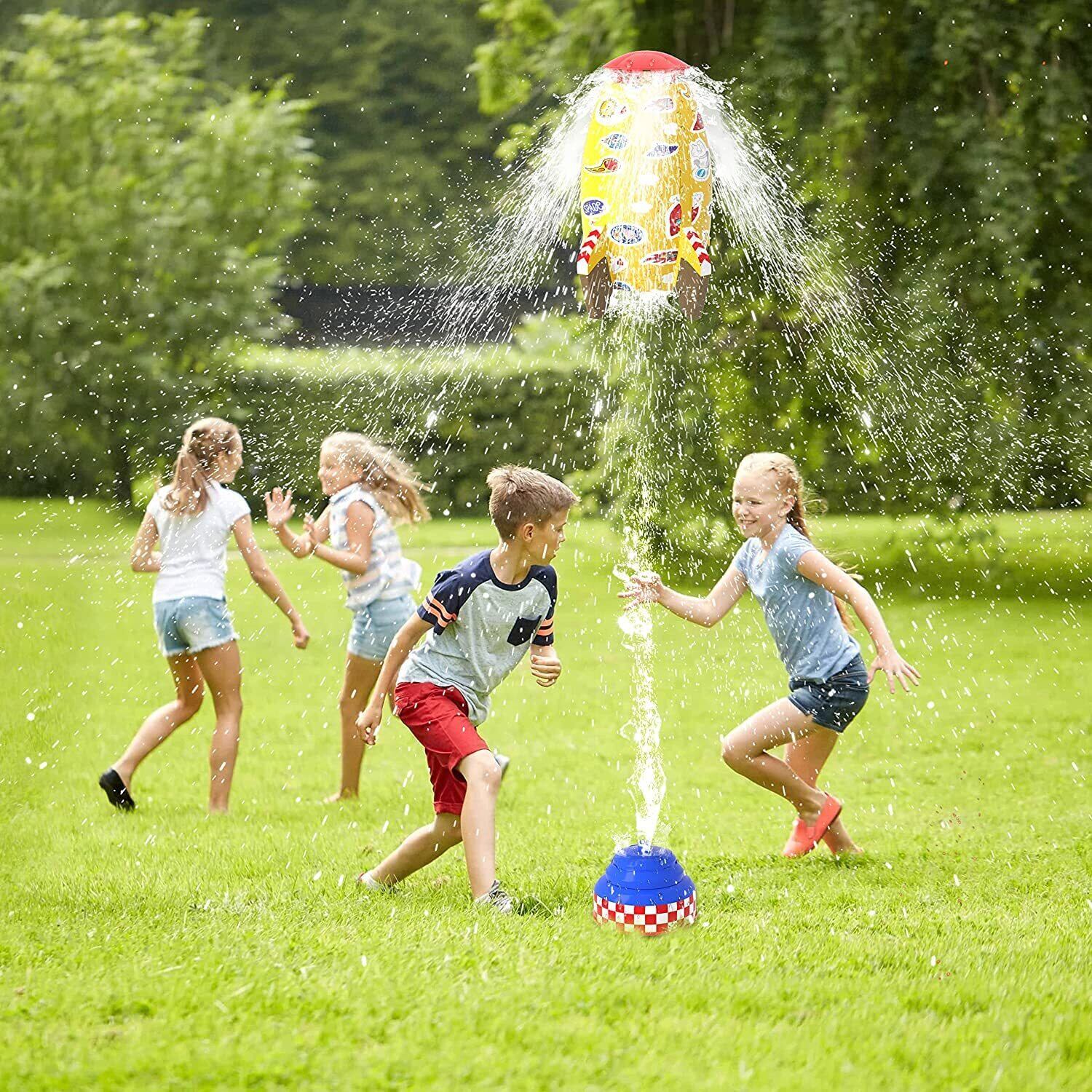 【スプリンクラー玩具】最近独自に開発したウォータースプレーは、水柱が集中し、拡散しにくいため、ロケットの上昇・下降をスムーズにしたり、空中にぶら下がったりすることができます。ロケットは水圧によって異なる高さまで上昇します。頭部は水をかける吐水口として機能し、大人も子供も水しぶきの下で遊べます。