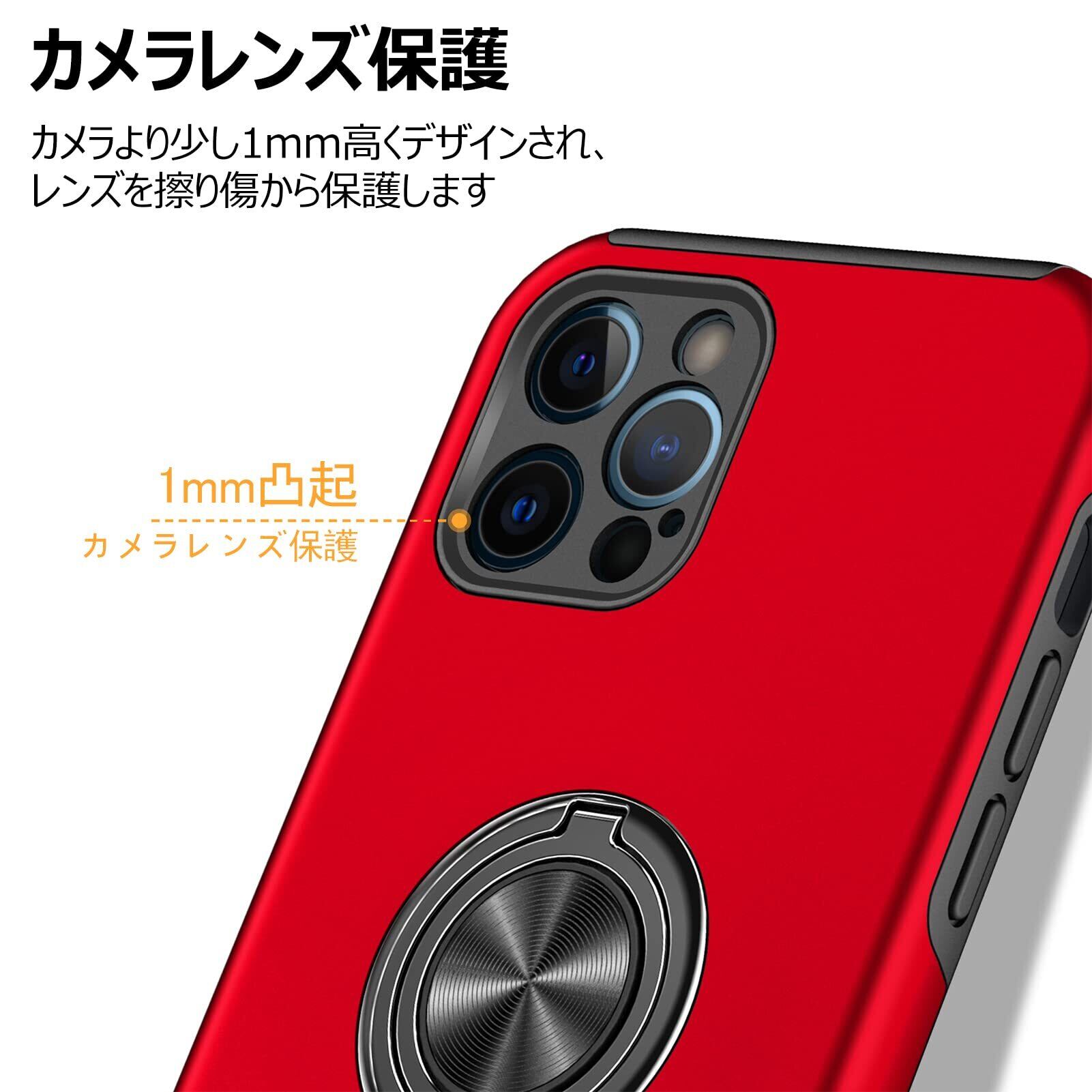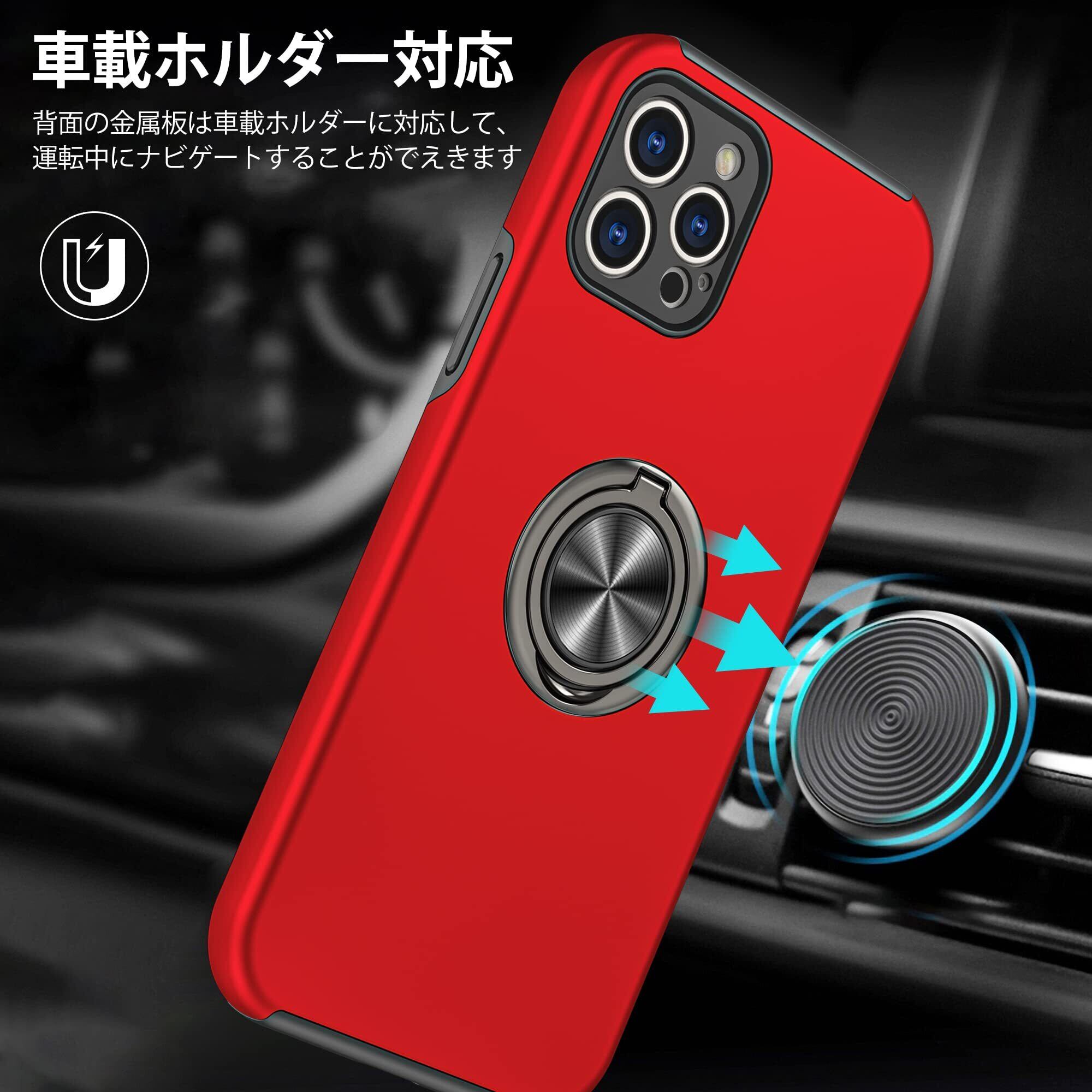 【WYEPXOL】iPhone 15 Pro 用ケースリング付き 耐衝撃 tpu pc 二重構造 全面保護 一体型スマホケース アイフォン15 pro 用ケース 衝撃吸収 シリコン 360°回転 スタンド機能 軽量 薄型 車載ホルダー対応 米軍MIL規格 6.1インチ 指紋防止 人気 携帯カバー 赤 ZW52-39