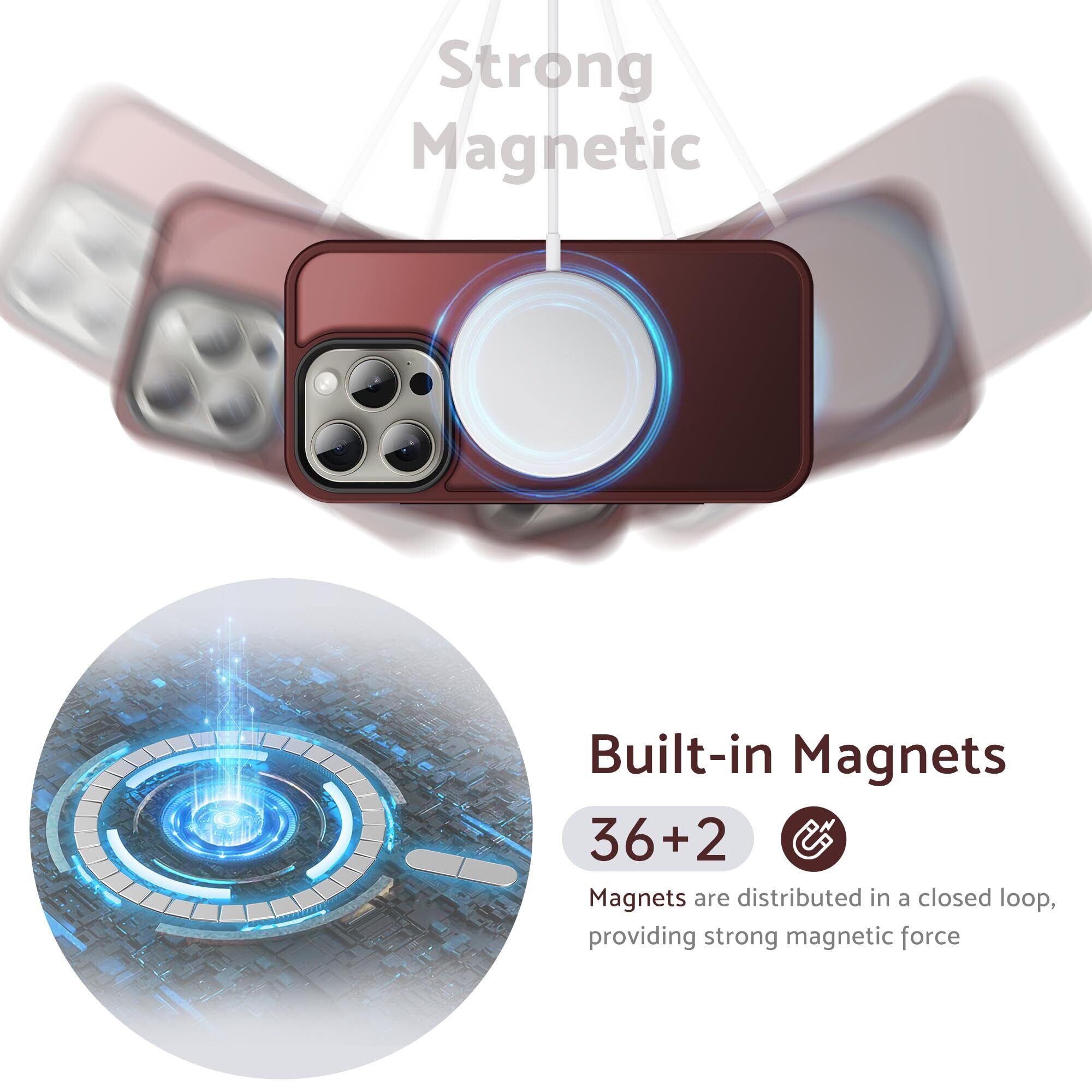 Anqrp iPhone 15 Pro Max ケース [Magsafe対応] マグネット搭載 マグセーフ 充電対応 半透明 マット感 耐衝撃 米軍MIL規格 指紋防止 ストラップホール付き スマホケース アイフォン15 Pro Max カバー 6.7インチ ワインレッド
