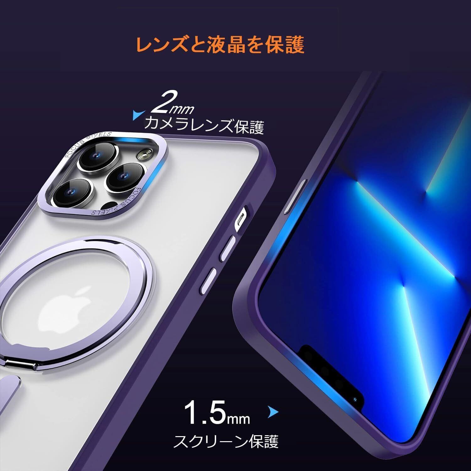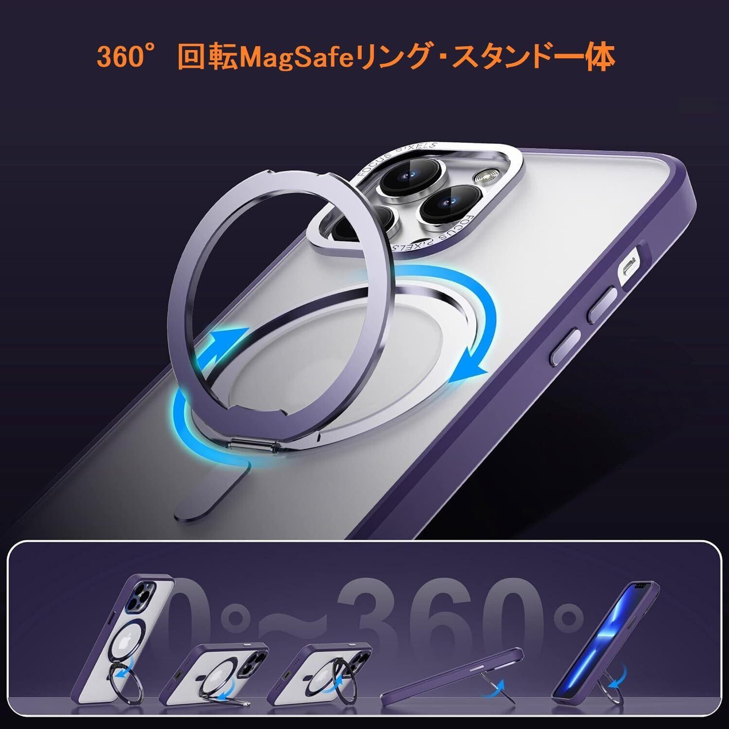 【360 Degree 回転MagSafeリング・スタンド一体】iPhone 12/12Pro 用 ケース MagSafe対応 あいほん12/12Pro用スマホケース 隠しスタンド機能 角度調整可 縦横両対応 ストラップホール付き 【ストラップ1種付き】米軍規格取得 耐衝撃 カメラレンズ保護 半透明 マット感ケース ワイヤレス充電対応 人気 6.1インチ(アイホン12/12Proパープル)